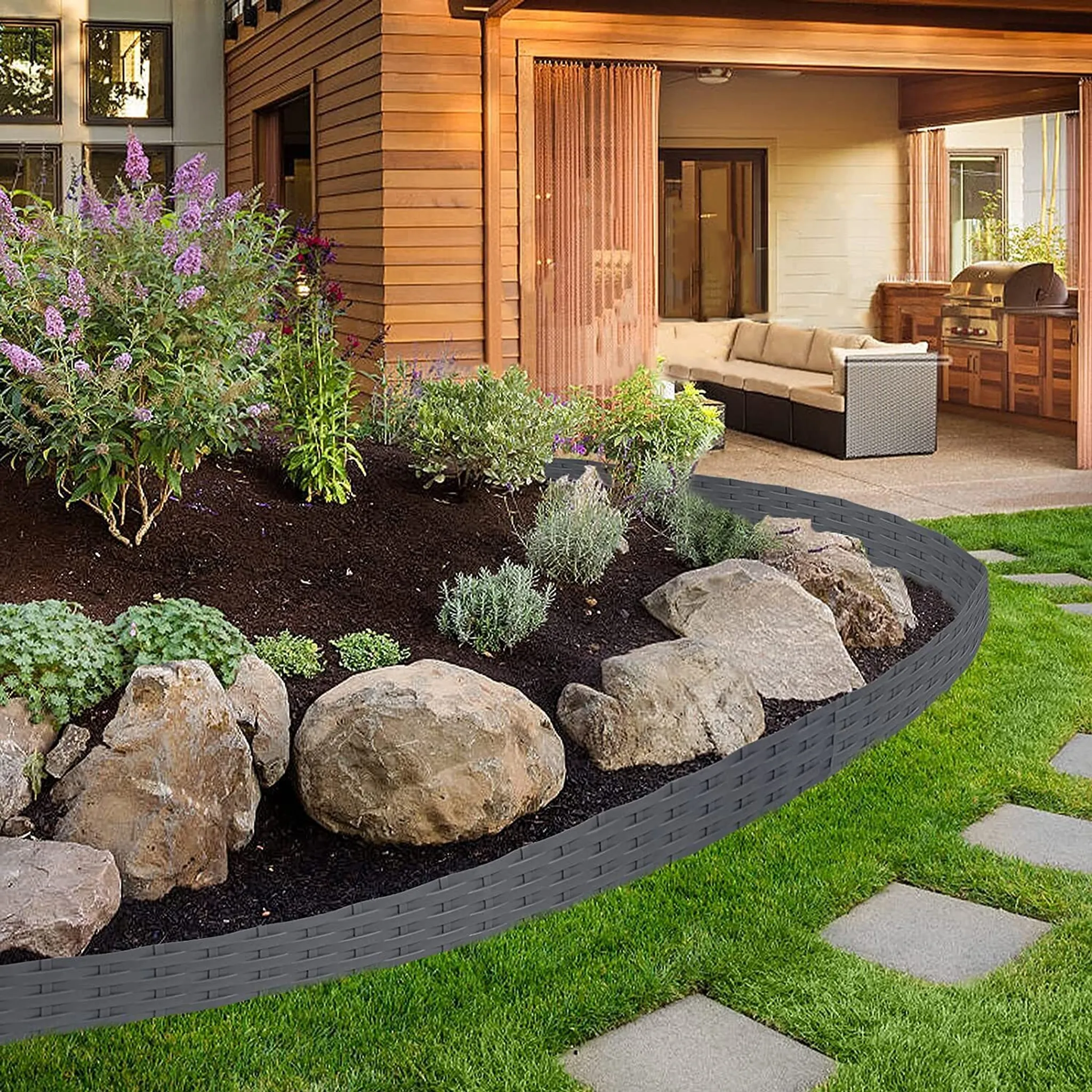 ACXIN Záhonová palisáda/zahradní obrubník, ratanový styl, 10m,antracit