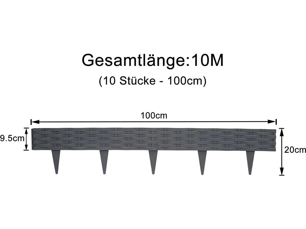 ACXIN Záhonová palisáda/zahradní obrubník, ratanový styl, 10m,antracit