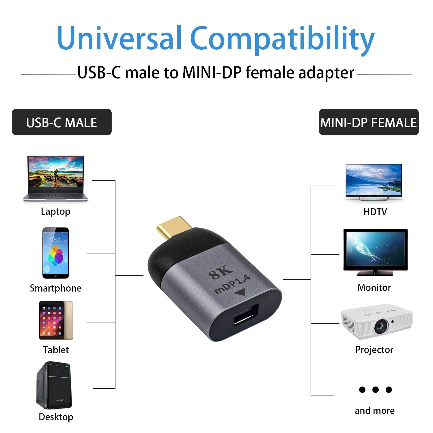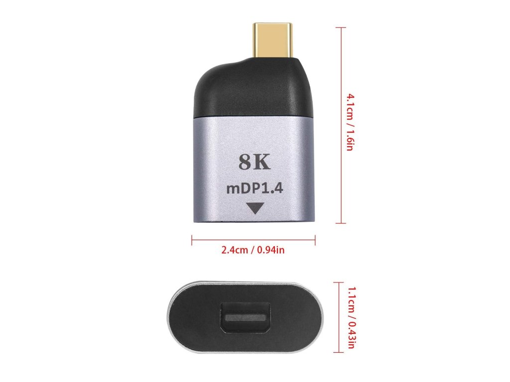 Adaptér USB-C na Mini DisplayPort 4K/8K, šedý, pozlacené konektory