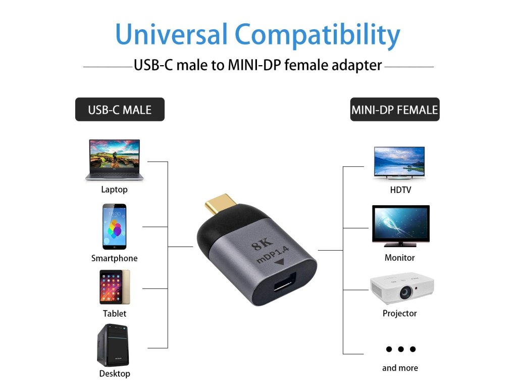 Adaptér je navržen tak, aby přenášel video a audio ve vysokém rozlišení z vašeho počítače do zobrazovacího zařízení. Podporuje rozlišení videa až do 4K při 60 Hz a maximálně až 8K při 60 Hz, stejně jako rozlišení 1080p (Full HD). Vychutnejte si plynulé video streamování a hry s vysokým rozlišením a bezkonkurenční zvukovou čistotou díky podpoře nekomprimovaných digitálních audio kanálů.