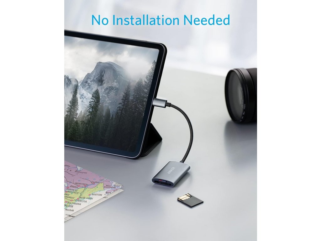 Čtečka Anker PowerExpand+ se pyšní ultra-kompaktním designem. Tento minimalistický rozměr zaručuje, že po připojení k počítači nezabírá zbytečně mnoho místa a neblokuje přístup k dalším okolním portům, takže ji lze pohodlně používat i na cestách