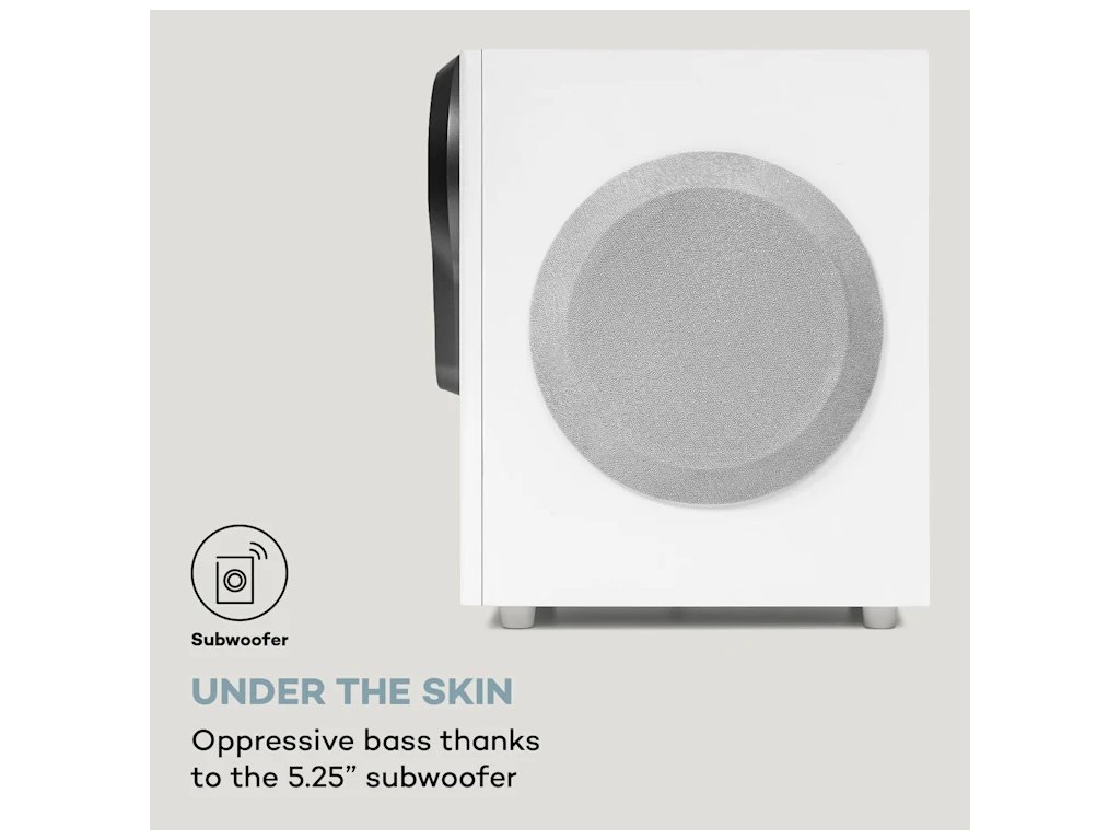 Srdcem systému je 5,25" basreflexový subwoofer, který poskytuje hluboké a bohaté basy. Spolu s pěti satelitními reproduktory (čtyři sloupové a jeden centrální) vytváří celkový RMS výkon 125 W, což zaručuje působivý a dynamický zvuk. Elegantní celkový design se navíc bez problémů začlení do jakéhokoli interiéru a podtrhne moderní vzhled vašeho obývacího pokoje.