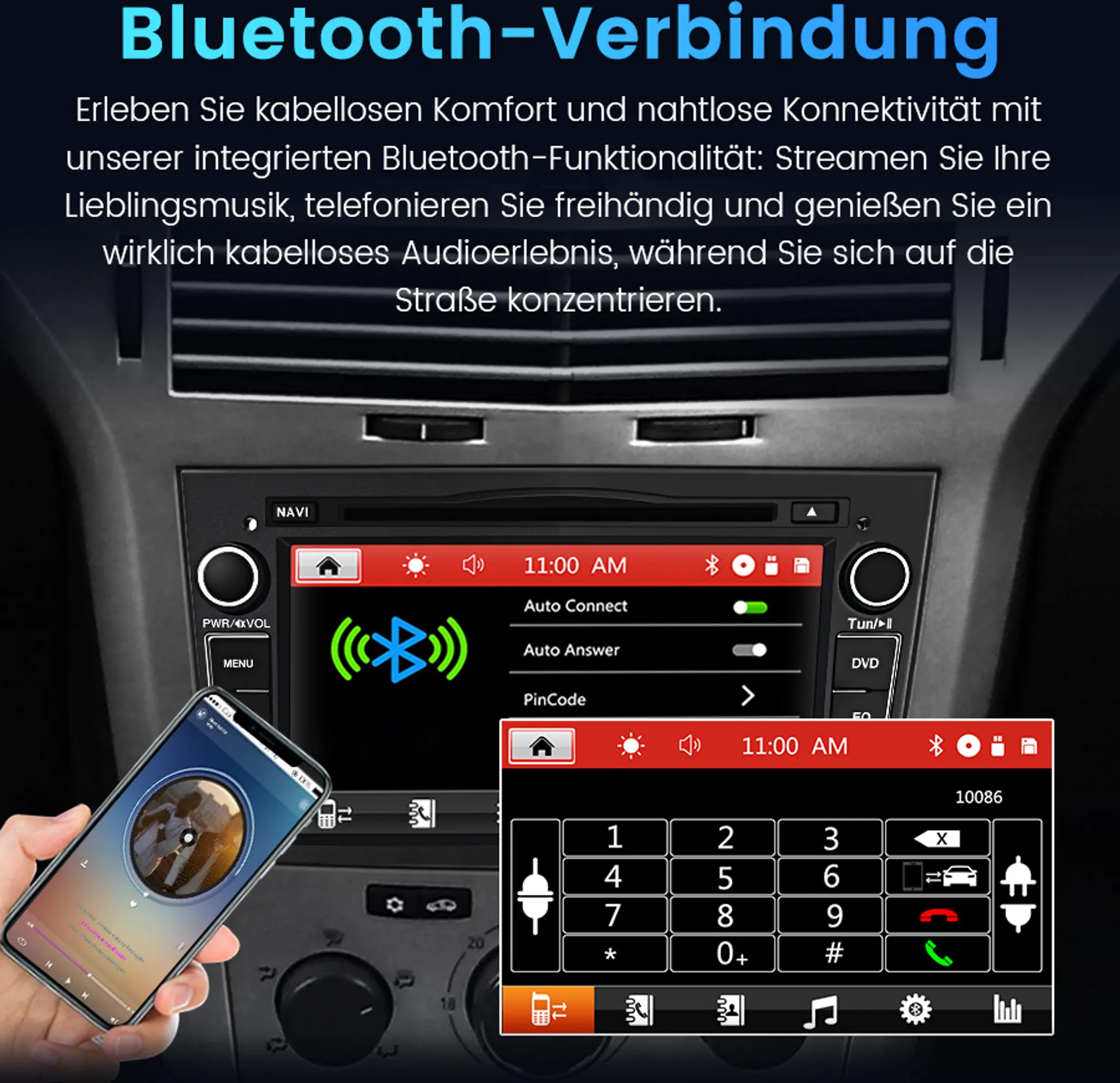 Autorádio je určeno pro modely Opel: Astra (2004-2009), Vectra (2005-2008), Corsa (2006-2011), Antara (2006-2011), Vivaro (2006-2010), Zafira (2005-2011) a Meriva (2006-2010). Díky podpoře sběrnice Canbus umožňuje plné využití ovládání na volantu. Vestavěná technologie Bluetooth slouží pro bezpečné hands-free volání i streamování hudby. Jednotka podporuje připojení parkovacích senzorů (PDC) i zadní kamery (kamera není součástí balení).