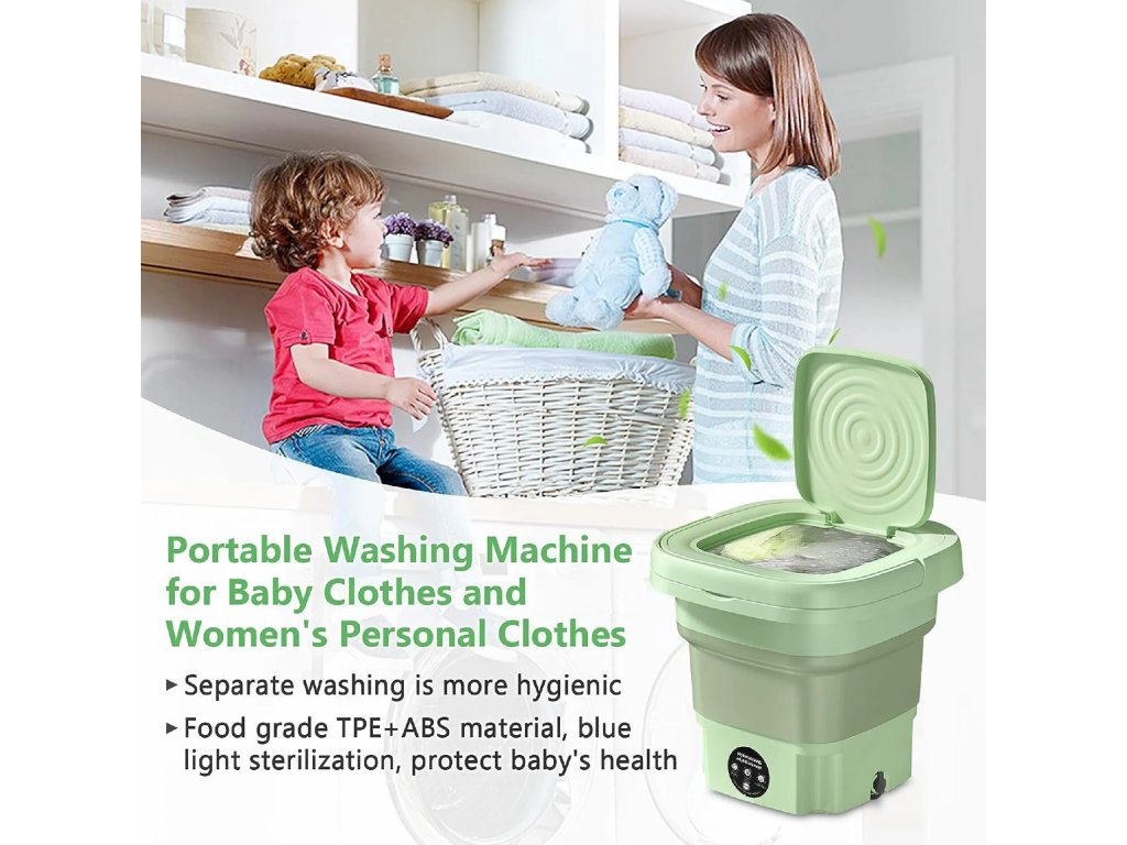 Auveach MLSC-01 Skládací mini pračka, 8 l, zelená