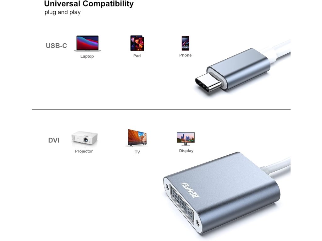 BENFEI Kompaktní adaptér USB-C na DVI-D, podpora 1920x1200@60Hz