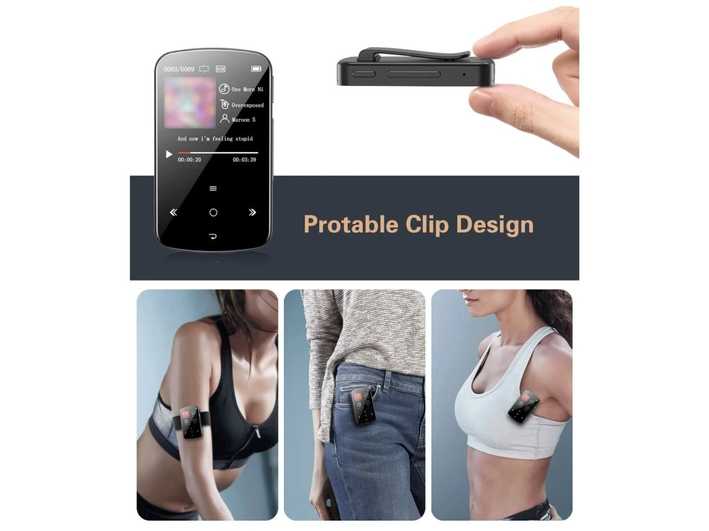 Benjie M9 ultratenký MP3 přehrávač s klipem, 1,5", 32GB, černá