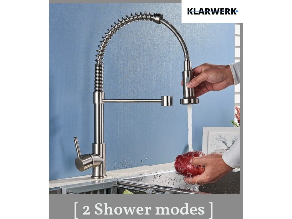 Hlavní předností je vysoký oblouk s masivní pružinou, která umožňuje volný pohyb výtokové části. Celá baterie je otočná o 360 stupňů, což zajišťuje maximální dosah a komfort při práci v dřezu. Pomocí jednoho pákového regulátoru lze plynule nastavit teplotu a průtok vody.