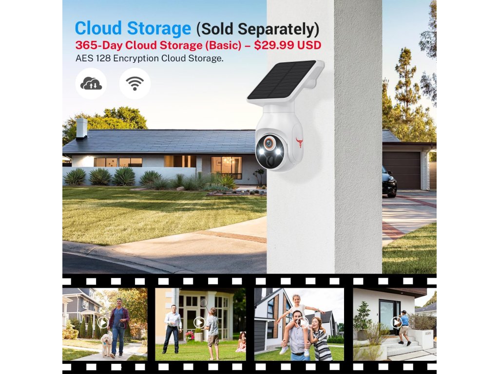 Záznamy můžete bezpečně ukládat na šifrované cloudové úložiště (AES 128-bit), které je prodáváno samostatně. Úložiště umožňuje vzdálený přístup a sdílení záznamů. (Paměťové SD karty NEJSOU podporovány.)