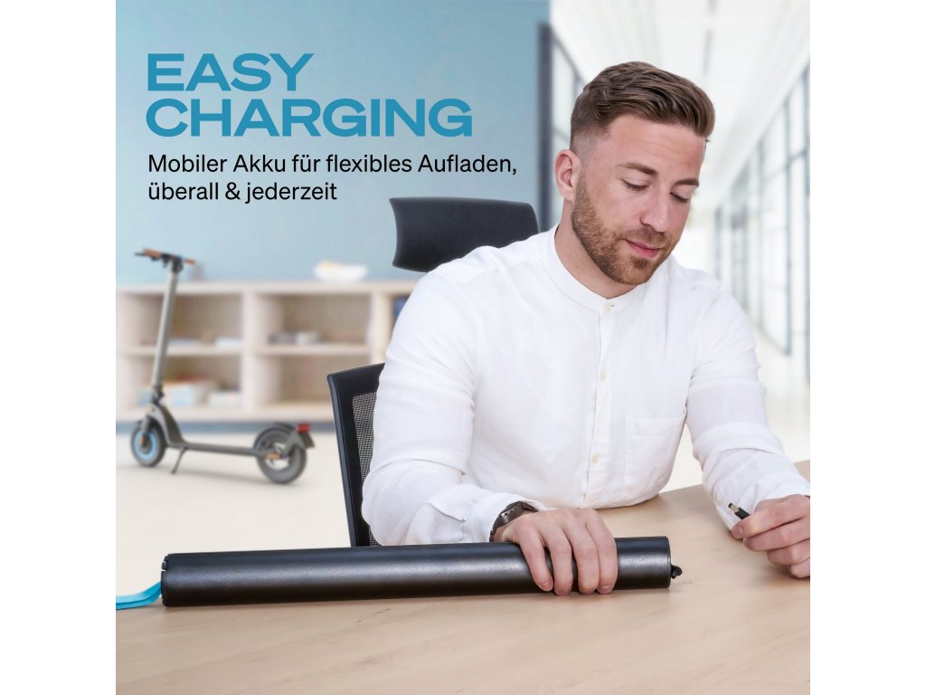 Koloběžka je osazena silným 350W motorem, který umožňuje svižnou jízdu s maximální rychlostí 20 km/h. Srdcem pohonu je vysoce kvalitní lithium-iontová baterie o kapacitě 230,4 Wh od renomovaného výrobce, která poskytuje dojezd až 25 km. Pro maximální pohodlí a flexibilitu je baterie vyjímatelná, což usnadňuje její nabíjení – plné nabití trvá pouhé 3 až 4 hodiny.