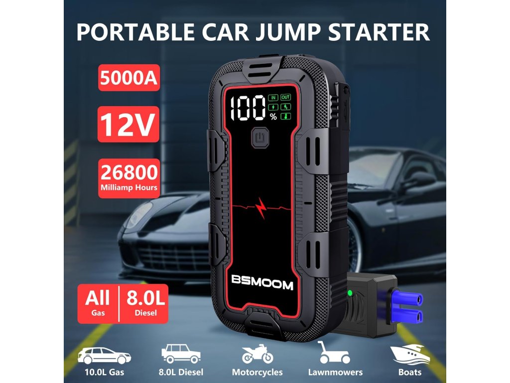 BSMOOM B01 Startovací stanice 5000A, 26800mAh pro benzin/8.0L diesel