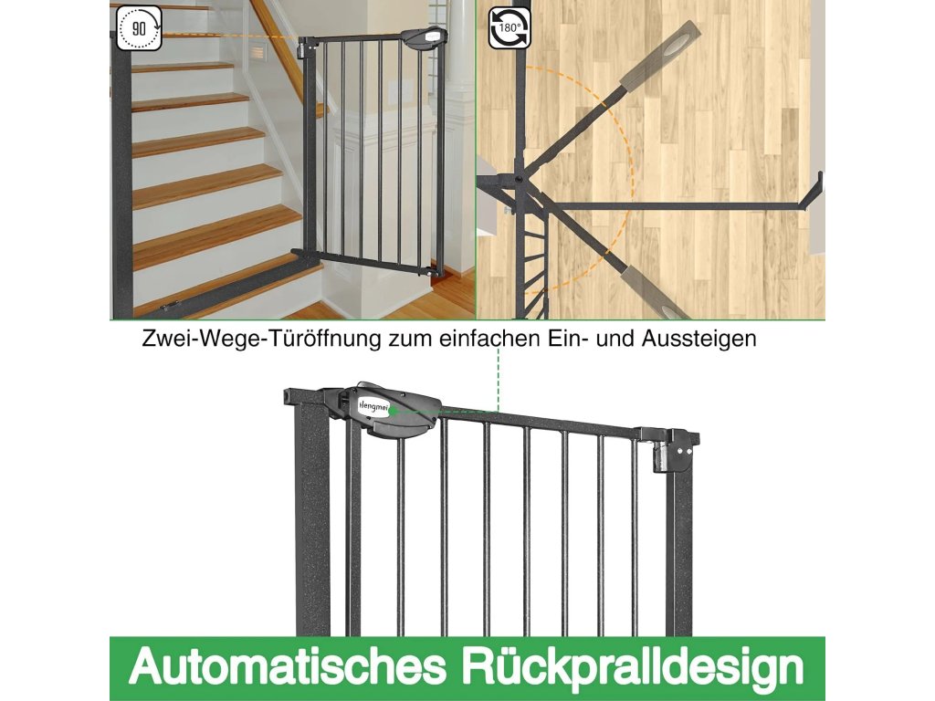 Chytrý systém automatického odskoku zajistí samočinné zavření dvířek, pokud zůstanou otevřena v úhlu menším než 90 stupňů. Samotná brána se otevírá obousměrně v rozsahu 180 stupňů, zaručuje to maximální komfort při pohybu mezi místnostmi. Průchozí kanál o šířce 60 cm poskytuje dostatek místa pro pohodlný průchod dospělého člověka i v úzkých chodbách.