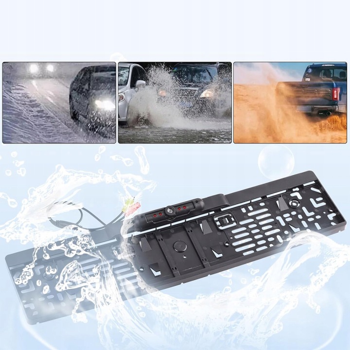 Rámeček je vyroben z pevného materiálu ABS a svými rozměry 52,7 x 12,5 x 3,5 cm přesně odpovídá standardním evropským registračním značkám. Celé zařízení splňuje normu krytí IP68, takže bez problémů odolává dešti, prachu i vysokotlakému mytí. Spolehlivě funguje v širokém teplotním rozsahu od -30 do +80 stupňů Celsia.
