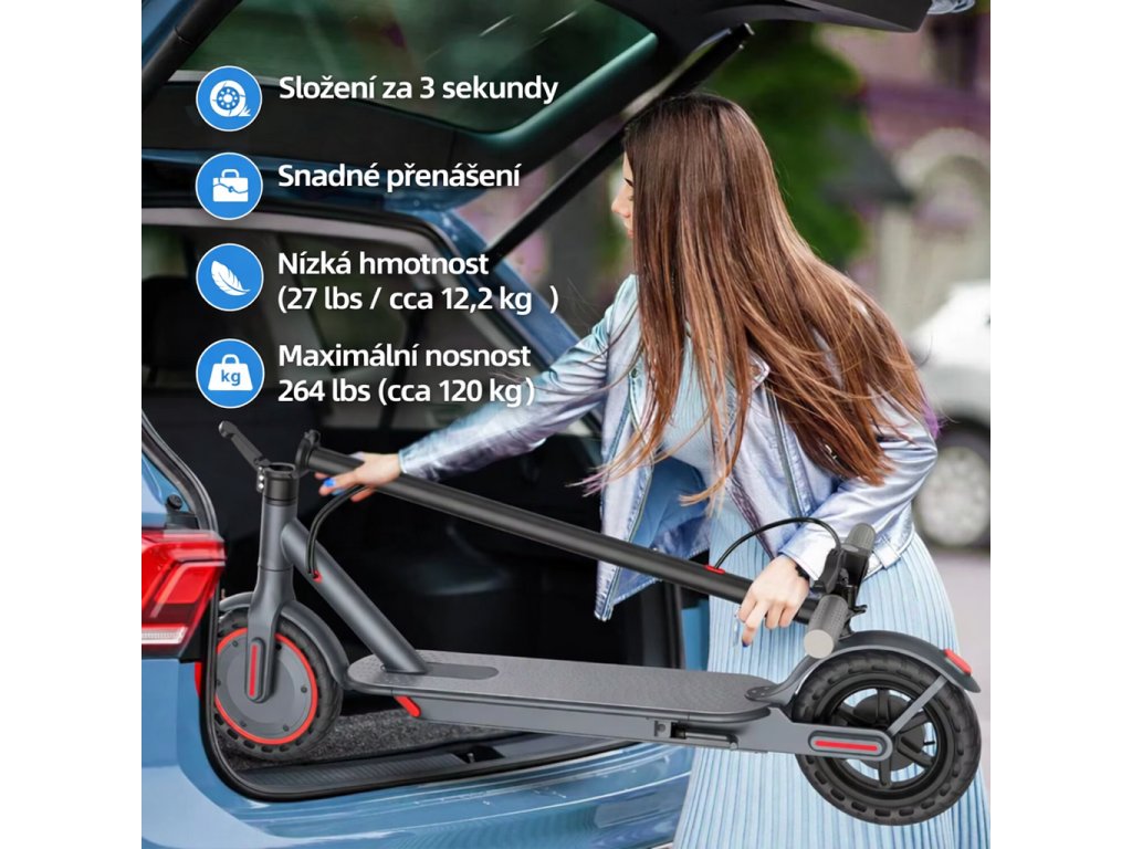 Elektrická koloběžka 350W (48V) – dojezd 25–30 km, tempomat, duální brzdy