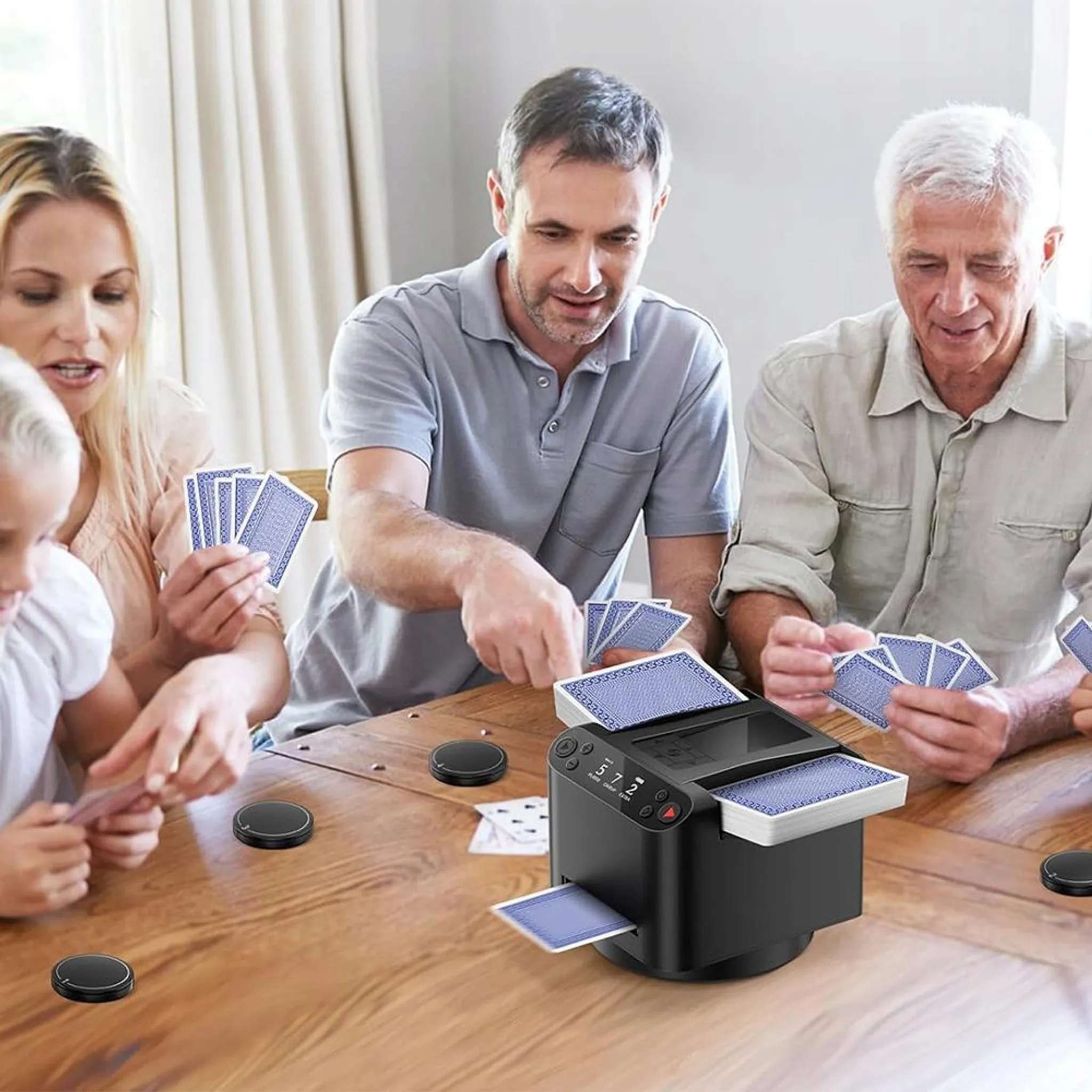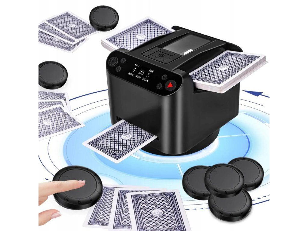 Zařízení umožňuje hru až pro 12 účastníků a pojme dva balíčky karet s možností dalšího rozšíření přihrádky. Díky rotaci o 360 stupňů a podpoře míchání v obou směrech probíhá příprava karet velmi důkladně. Uživatelé mohou přesně definovat počet hráčů, množství společných karet i velikost jednotlivých listů, tato flexibilita dělá z přístroje ideálního pomocníka pro Texas Hold'em, blackjack i rodinné hry.