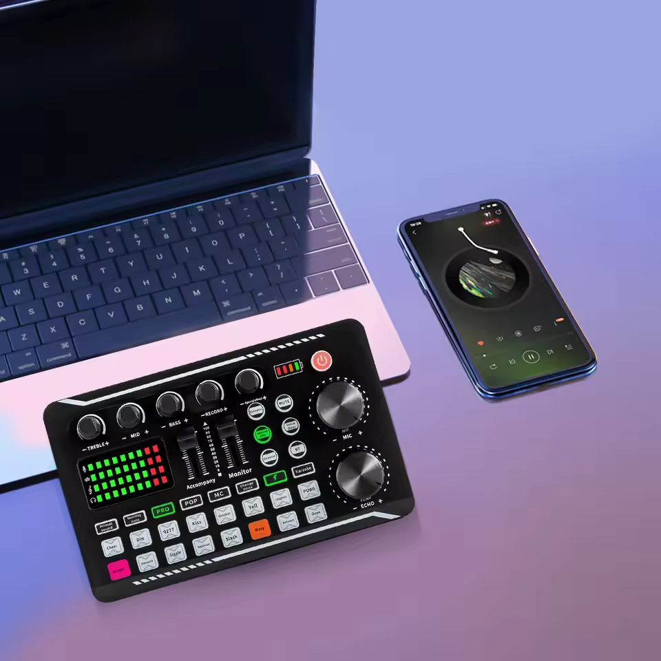 Zvuková karta disponuje 12 úrovněmi elektronického ladění tónů a 16 speciálními efekty a zvuky prostředí, které pomáhají vytvořit tu správnou atmosféru při živém vysílání. Nechybí ani funkce měniče hlasu se 4 zvukovými efekty, jako je přechod ze ženského hlasu na mužský a naopak, nebo hlas monstra a dítěte, přinášející do studia více zábavy. Máte možnost individuálně upravovat výšky, středy a basy, čímž dosáhnete plnějšího, jasnějšího a pronikavějšího, nebo naopak stabilnějšího a čistšího zvuku. Je vybavena čipem s funkcí automatického potlačení šumu pro čistou reprodukci zvuku a zachycení detailů.