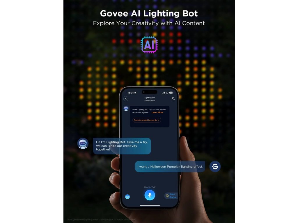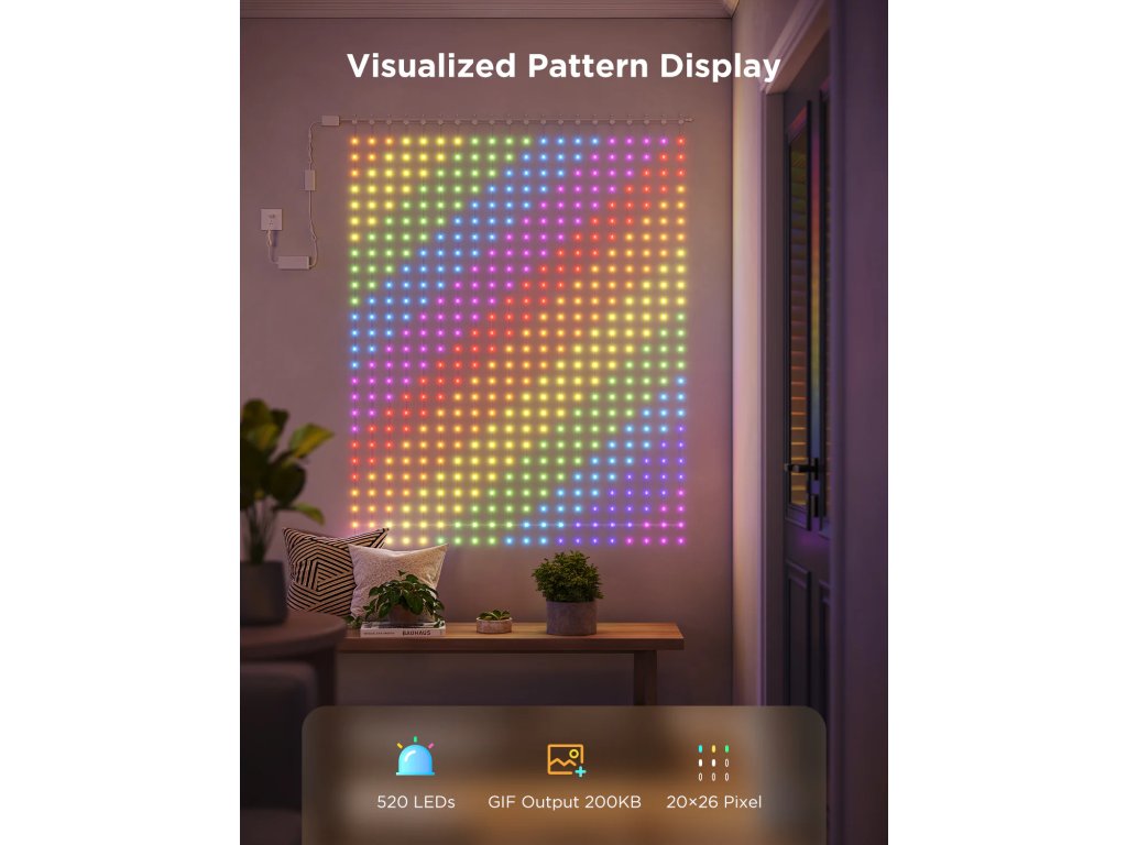 Jako první produkt Govee podporuje tento světelný závěs vizualizované efekty generované umělou inteligencí na základě vašich textových pokynů. Odemkněte další možnosti s funkcemi DIY, které umožňují skládat až 10 vrstvených pláten pro bohatší animované scény. Můžete také snadno nahrát vlastní fotografie a GIFy a vytvořit tak zcela nové a osobní světelné efekty.