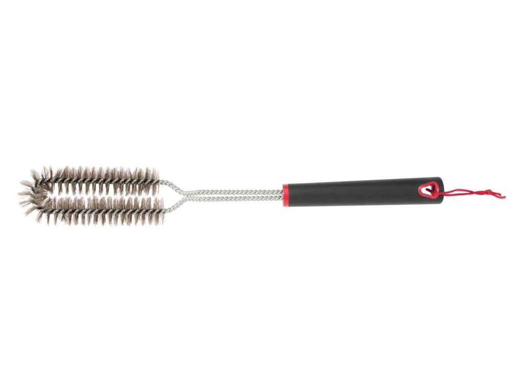 Rovná konstrukce kartáče umožňuje přesné a pohodlné vedení pohybu po celé ploše roštu. Pro maximální komfort je rukojeť vybavena praktickým závěsným poutkem. Tento prvek dovoluje snadné uložení nástroje přímo na háček grilu, kde zůstane vždy v dosahu pro okamžité použití po skončení přípravy jídla.