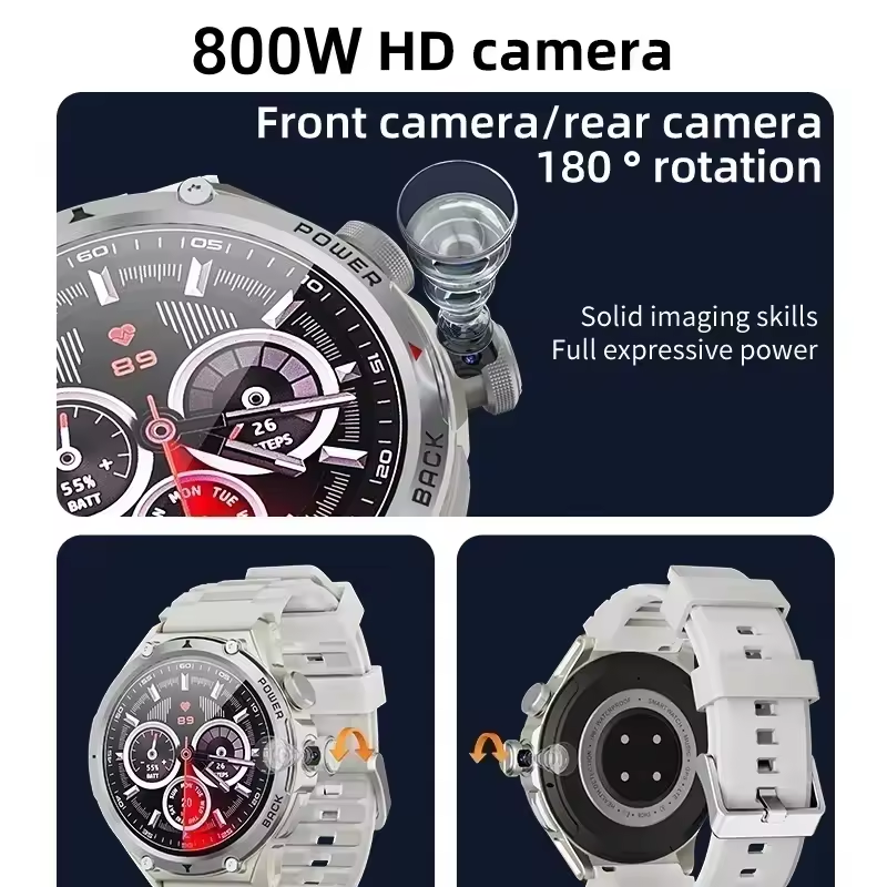 Hlavní vizuální prvek tvoří 1.6-palcový AMOLED displej s HD rozlišením 720 x 720 pixelů, který poskytuje křišťálově čistý obraz a je navíc vybaven ochranou proti modrému světlu. Jedinečnou funkcí je 8 MPx HD otočná kamera, která rozšiřuje možnosti použití hodinek pro focení nebo videohovory.