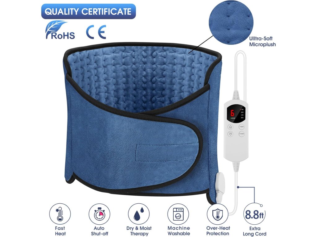 Zařízení disponuje šesti úrovněmi ohřevu v teplotním rozsahu od 40 °C do 60 °C. Uživatel si tak může zvolit přesný stupeň tepla pro maximální pohodlí. Bezpečnost zajišťují čtyři režimy časovače v rozmezí 30 až 120 minut. Po vypršení zvoleného času se podložka automaticky vypne. Tento systém šetří energii a zároveň předchází nechtěnému přehřátí.