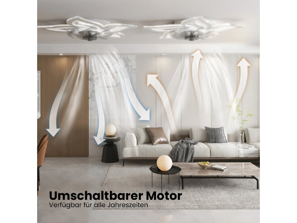 Heilmetz Stropní ventilátor, tvar elegantní květiny, s LED osvětlením