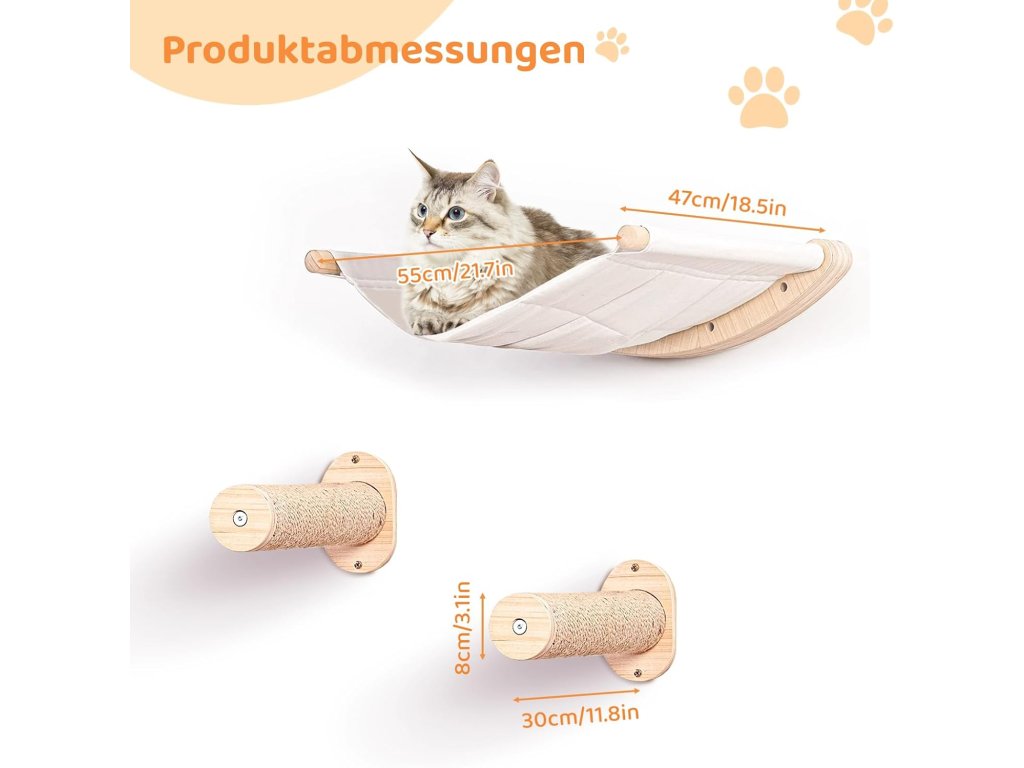 Itoyx Dřevěný nástěnný set pro kočky, s pelíškem a sisalem