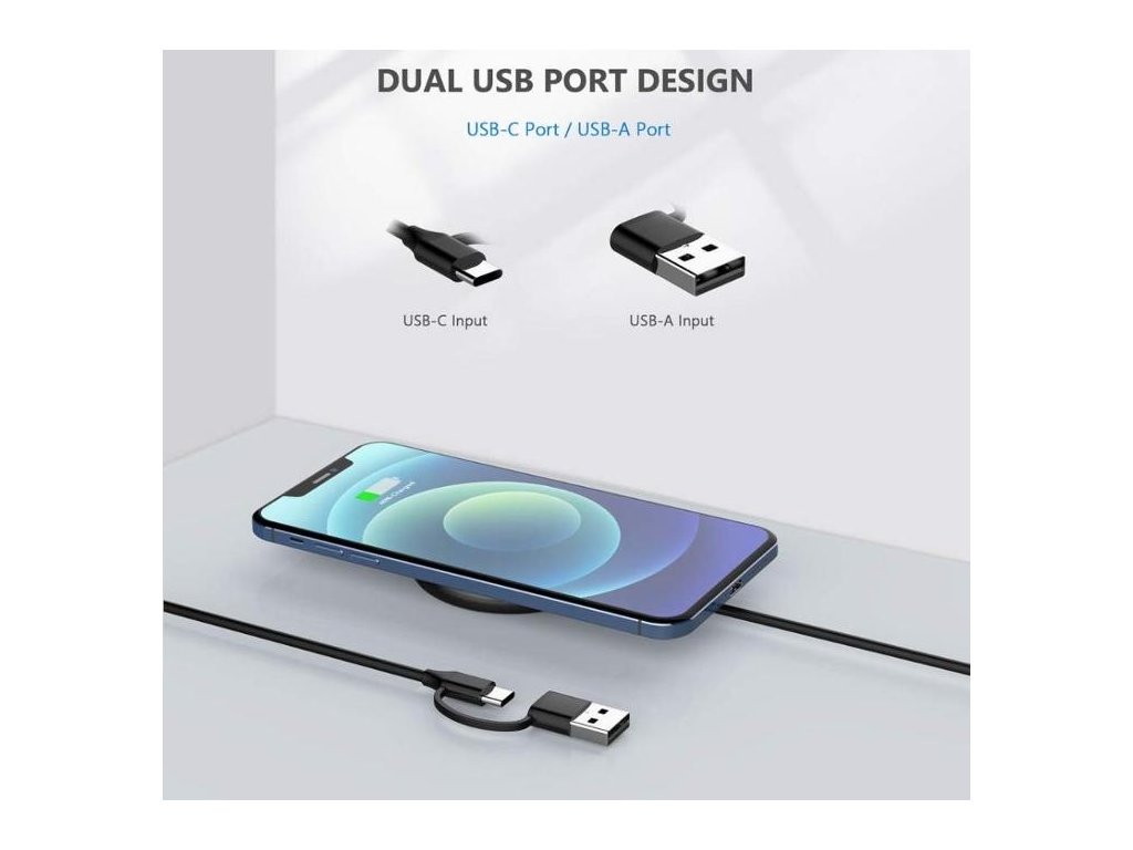 Magnetická bezdrátová nabíječka Yootech KA011 Mag-Safe, rychlá bezdrátová nabíjecí podložka, 1,5m nabíjecí kabel s typem C a USB A portem kompatibilní s iPhone 12/12 mini / 12 Pro / 12 Pro Max, AirPods Pro, Samsung atd...