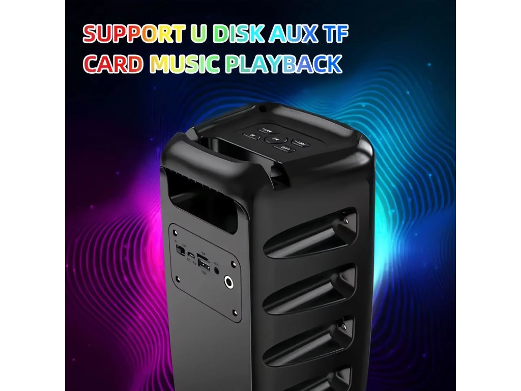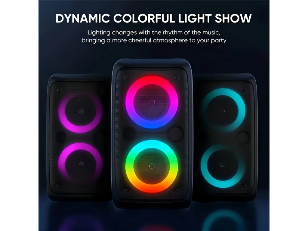 Reproduktor je vybaven baterií s kapacitou 2400 mAh, která umožňuje přenosné používání bez nutnosti připojení k elektrické síti. Kompaktní rozměry 160 × 150 × 300 mm a hmotnost 1,52 kg usnadňují přenášení a umístění v interiéru