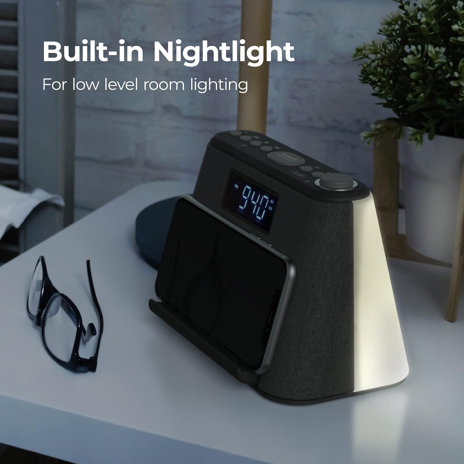Zařízení disponuje 3W RMS reproduktorem a snadným párováním přes Bluetooth, díky kterému si můžete přehrávat oblíbenou hudbu nebo vylepšit zvuk videí z mobilu. Integrované FM rádio umožňuje buzení oblíbenou stanicí a nabízí možnost automatického uložení až 10 předvoleb. Pro relaxaci jsou k dispozici 4 přednastavené přírodní zvuky, například tekoucí voda, které vám pomohou lépe usnout.
