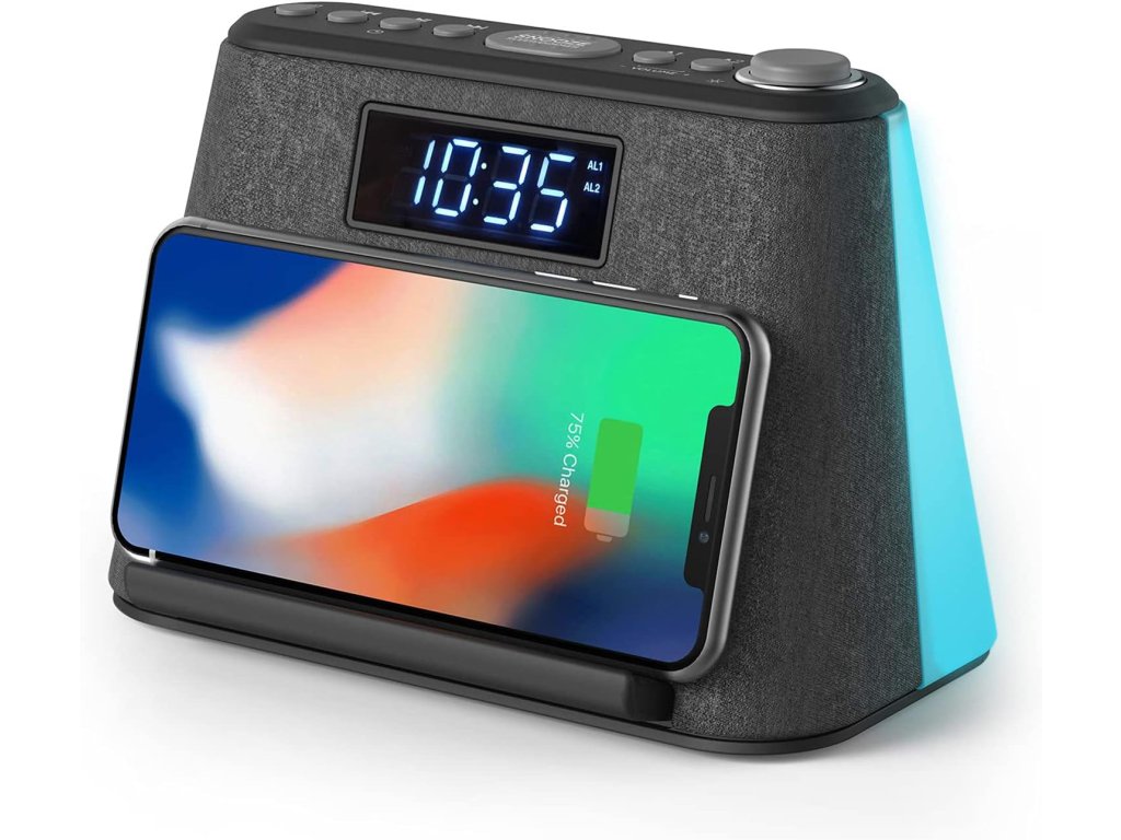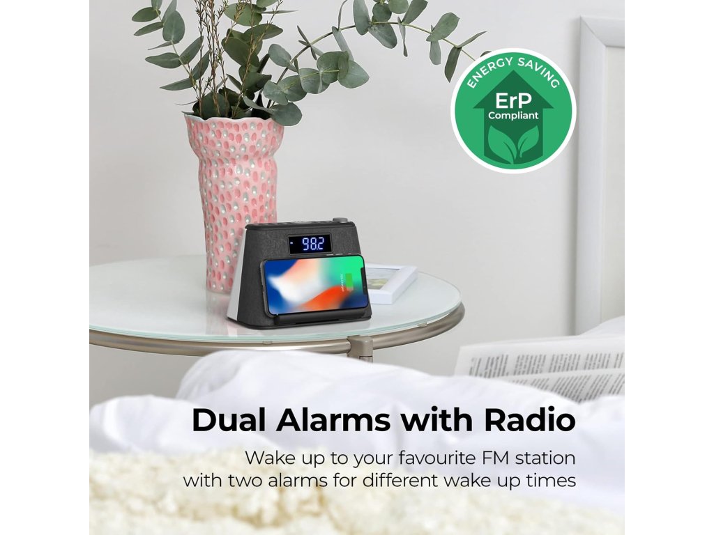 Zařízení disponuje 3W RMS reproduktorem a snadným párováním přes Bluetooth, díky kterému si můžete přehrávat oblíbenou hudbu nebo vylepšit zvuk videí z mobilu. Integrované FM rádio umožňuje buzení oblíbenou stanicí a nabízí možnost automatického uložení až 10 předvoleb. Pro relaxaci jsou k dispozici 4 přednastavené přírodní zvuky, například tekoucí voda, které vám pomohou lépe usnout.