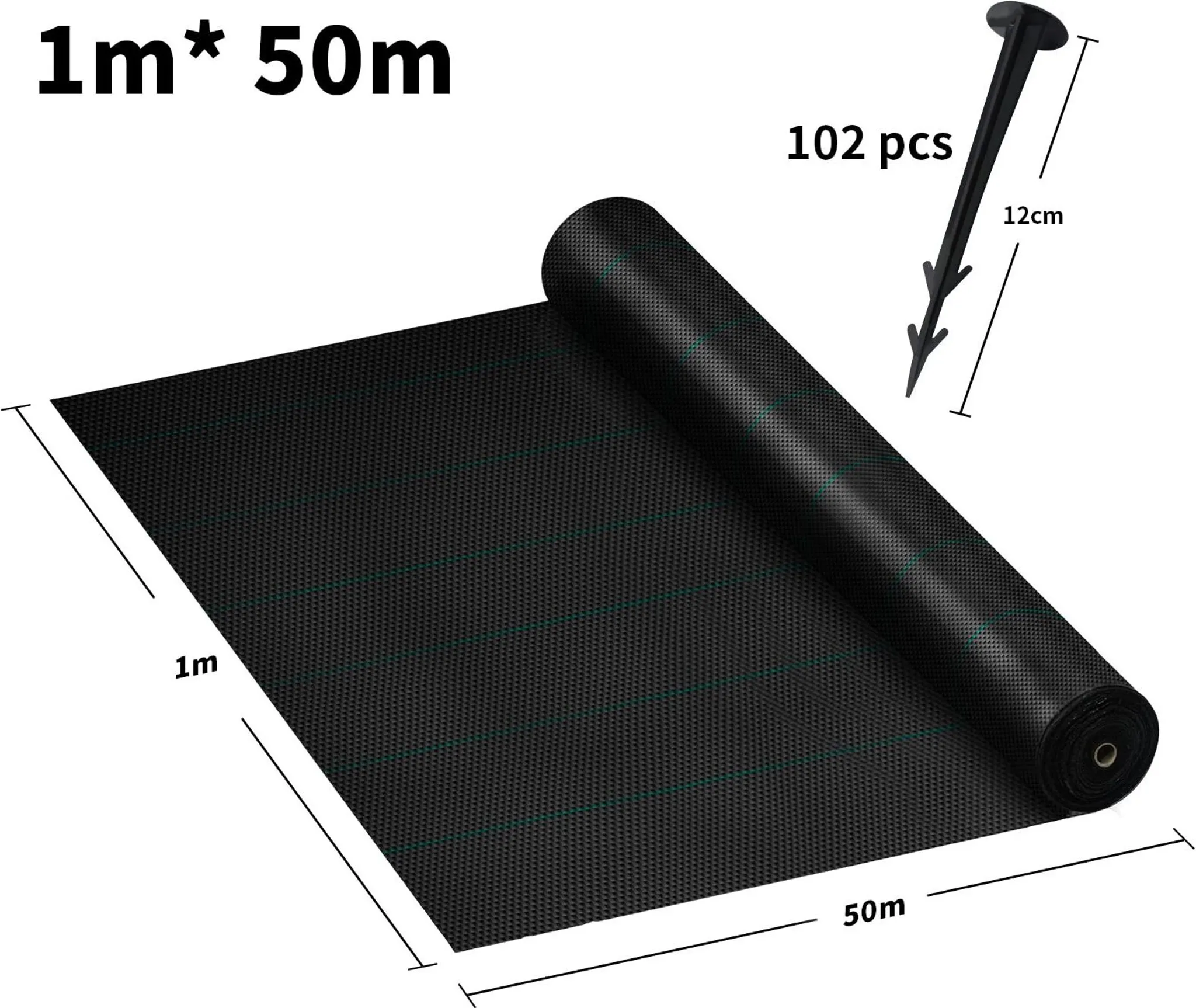 JOIEYOU tkanina proti plevelu 100 g/m², 1x50 m, UV odolné s kolíky