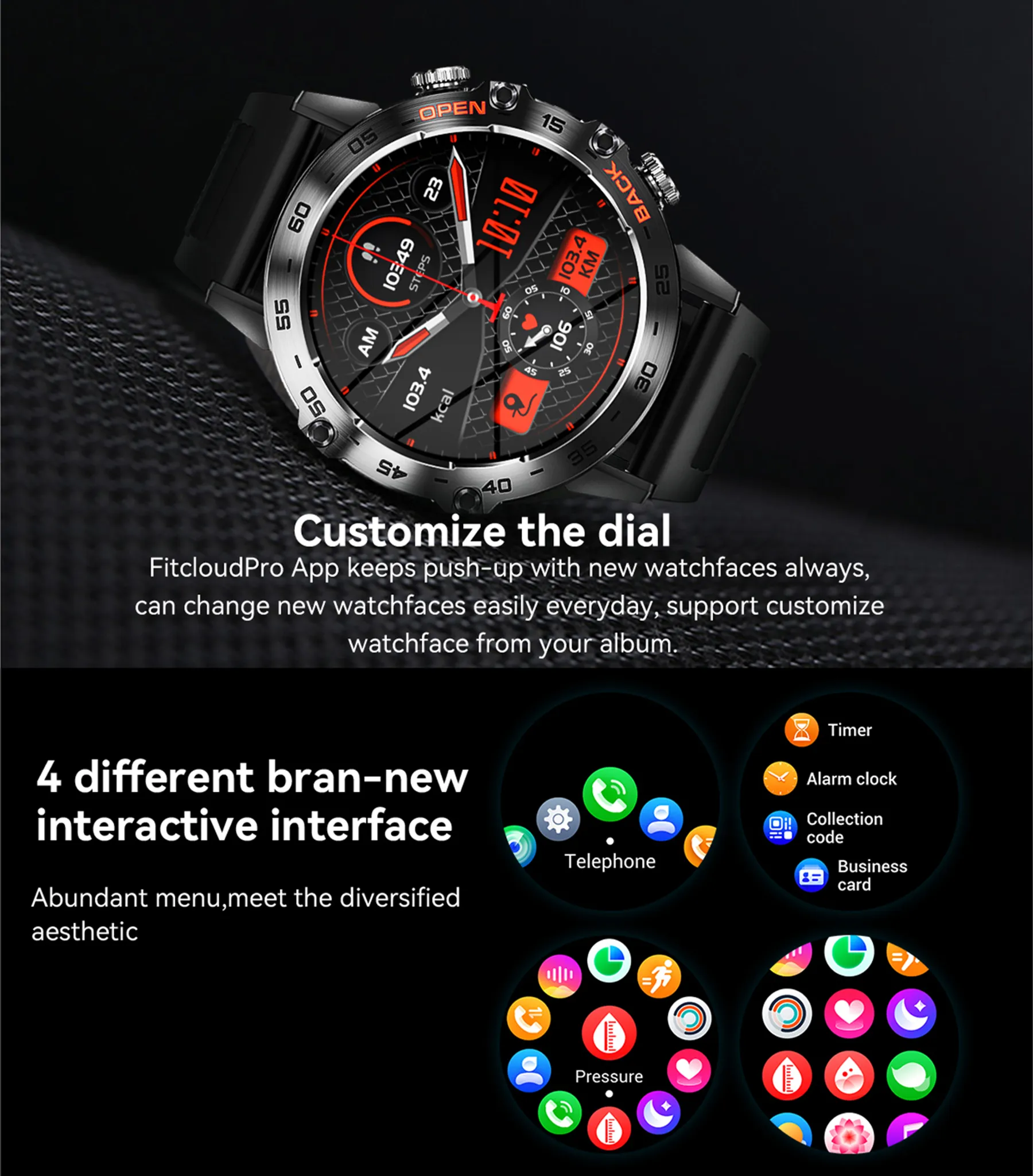 Po propojení s telefonem prostřednictvím stabilního Bluetooth 5.0 můžete přímo z hodinek vyřizovat telefonní hovory. Vestavěná dobíjecí baterie s kapacitou 400 mAh spolu s úsporným čipem zajišťuje dlouhou provozní dobu, obvykle 5–10 dní aktivního používání a až 30 dní v pohotovostním režimu. Hodinky také podporují různá jazyková nastavení a jsou kompatibilní se systémy Android 4.4+ a iOS 8.0+.