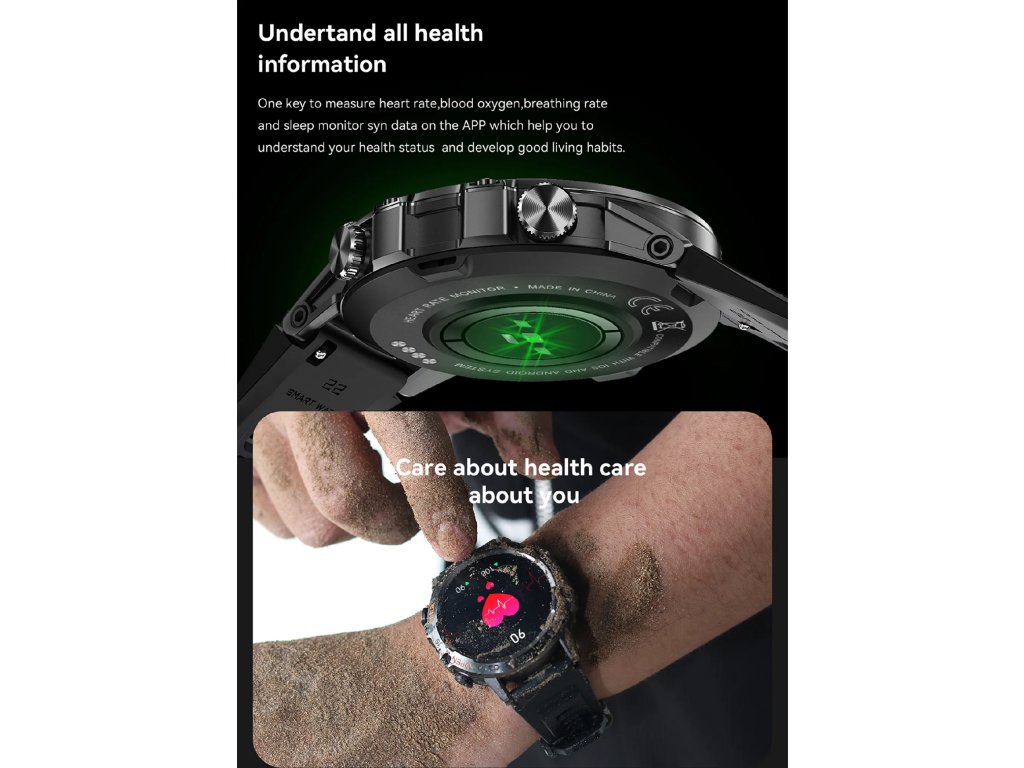 K52 Chytré sportovní hodinky, 1,39" IPS displej, BT 5.0, černé