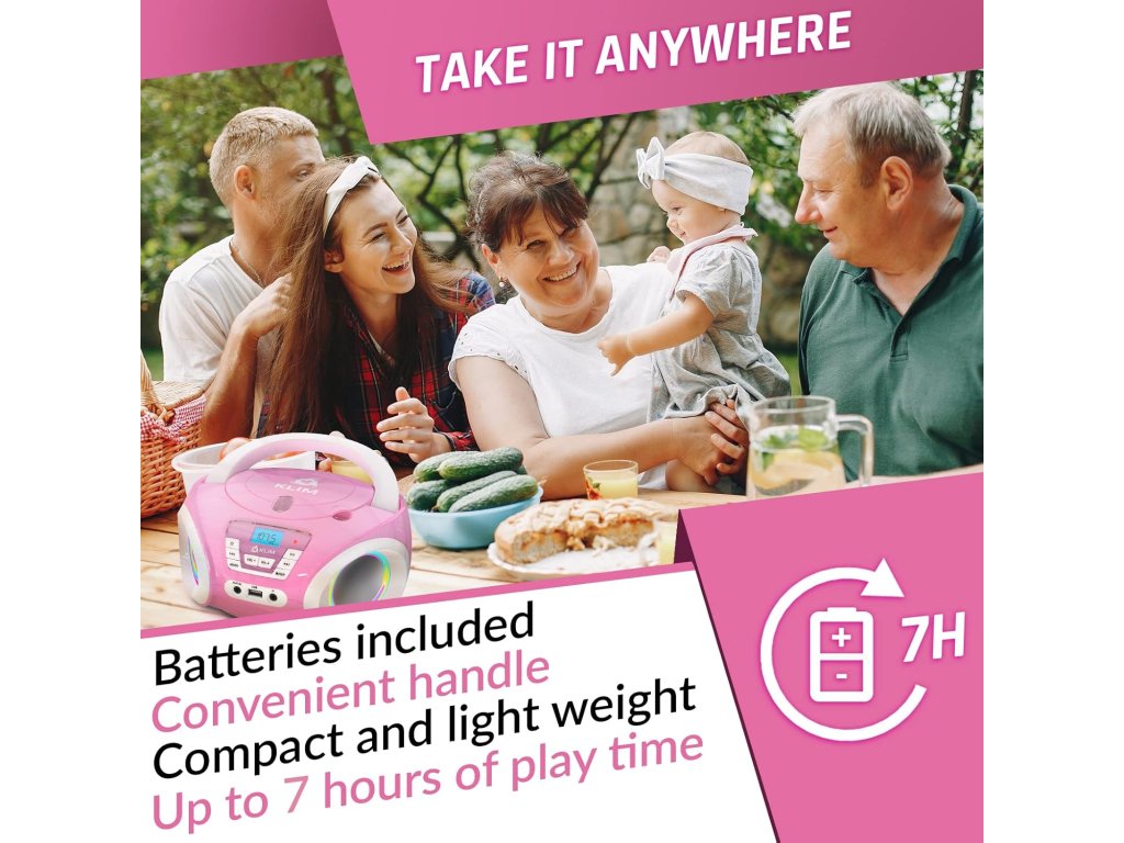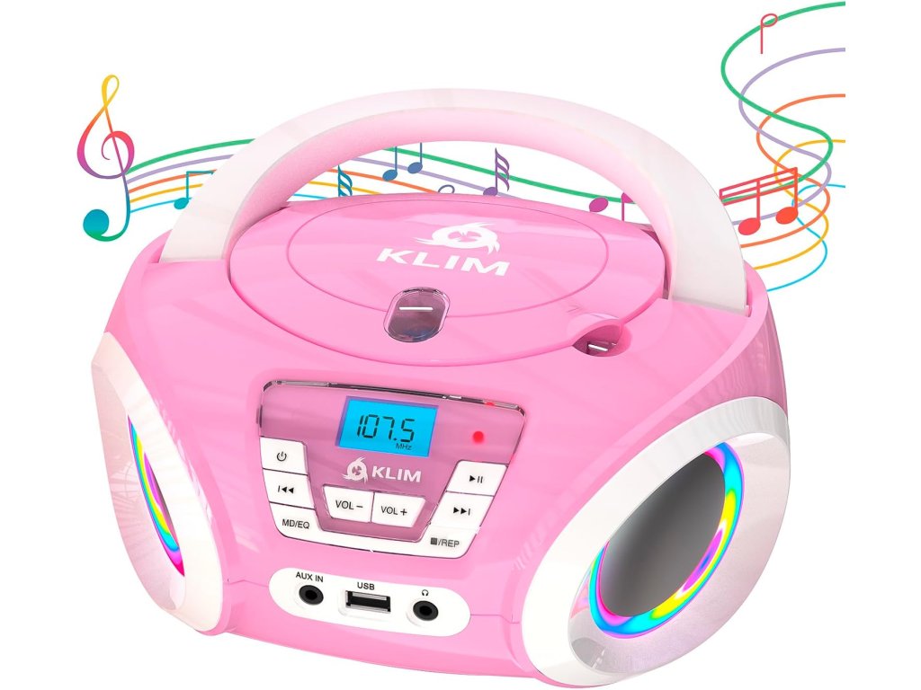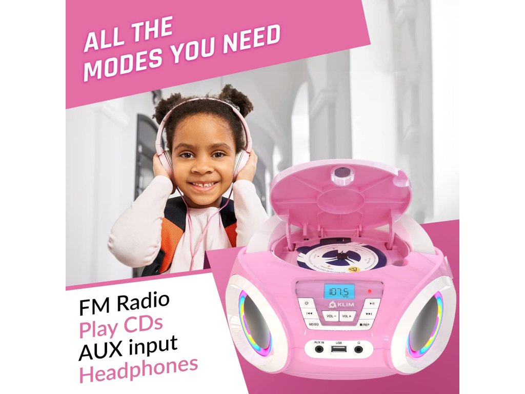 KLIM Candy Dětský Přenosný CD Přehrávač s FM Rádiem, Růžový