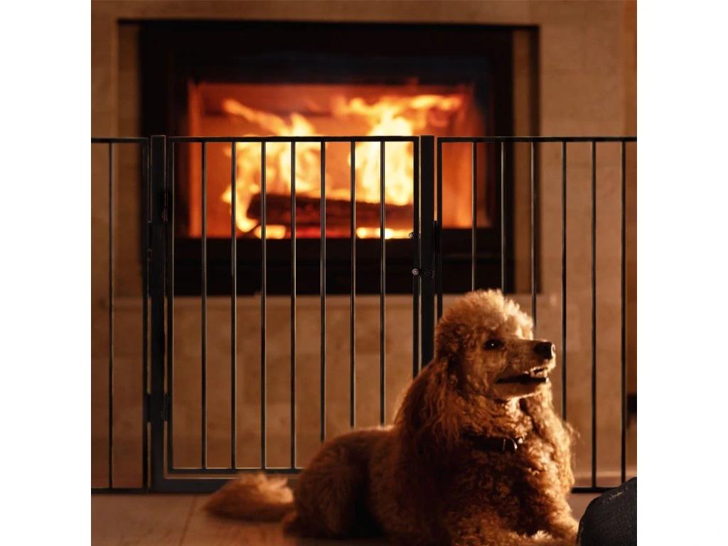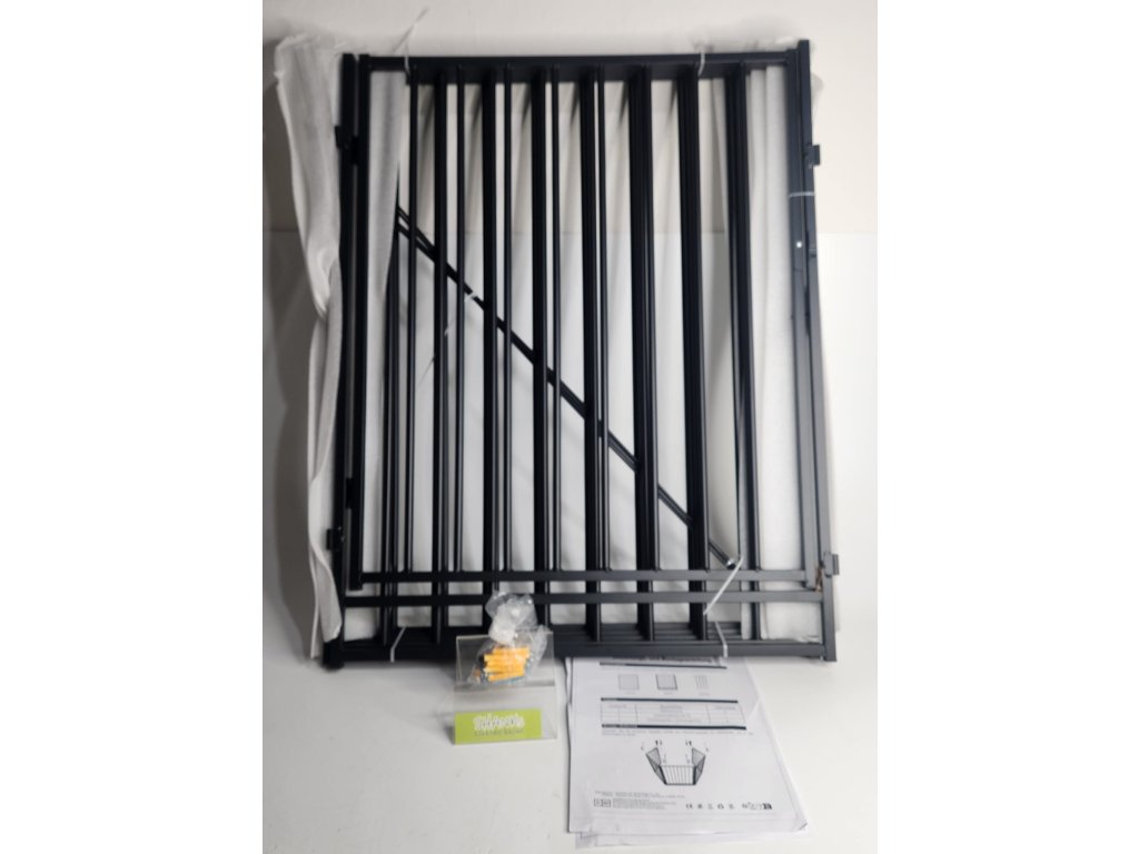 Sestava se skládá ze čtyř bočních prvků a jedněch centrálních dvířek, každý díl má výšku 76 cm. Díky integrovaným pantům a zásuvnému systému lze mřížku postavit do různých úhlů a tvarů podle dispozic vašeho interiéru. Pokud zábranu zrovna nepotřebujete, snadno ji složíte pro úsporu místa.