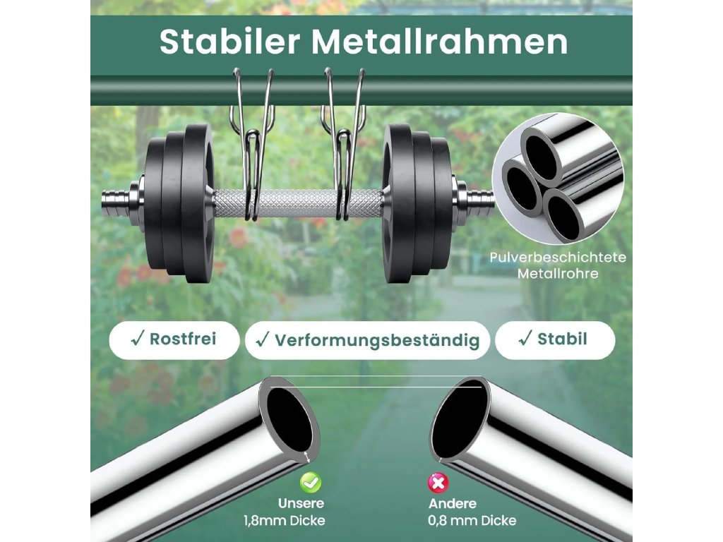 Hlava hrábí o rozměrech 75 x 25 cm je vyrobena z vysoce odolného kovu, který si snadno poradí s rozbíjením hlíny i odstraňováním drobných kamenů. Povrch kovových tyčí chrání speciální plastový lak, díky němuž nářadí nepodléhá deformacím ani korozi při dlouhodobém venkovním používání. Pevné sešroubování všech částí zaručuje stabilitu i při práci v náročnějších půdních podmínkách.