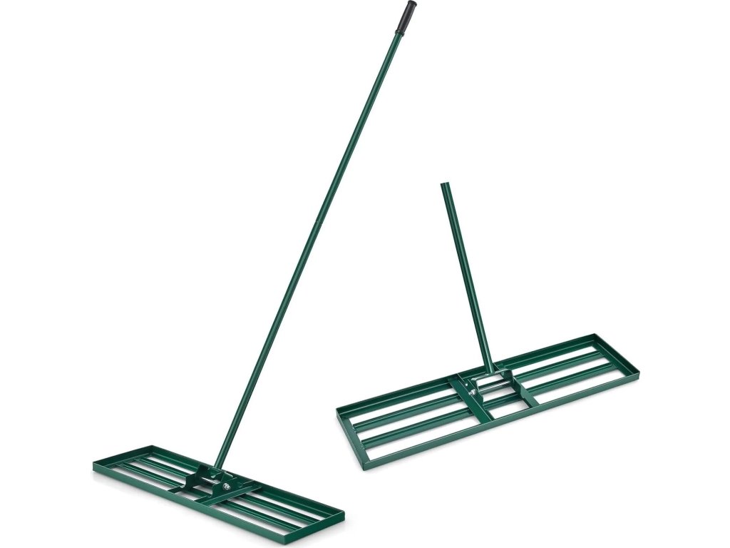 Kovové nivelační hrábě na trávník, 75x25 cm, násada 170 cm