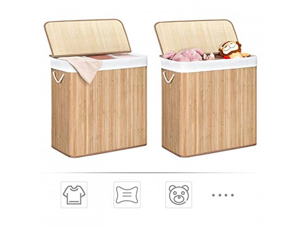 Konstrukce koše využívá přírodní bambus ošetřený speciálním lakem pro dosažení delší životnosti. Tento materiál v kombinaci s bílou bavlněnou látkou skvěle doplňuje interiéry laděné do přírodních tónů. Vnitřní uspořádání se třemi oddělenými komorami pomáhá udržet dokonalý přehled v rozděleném prádle již při jeho odkládání.