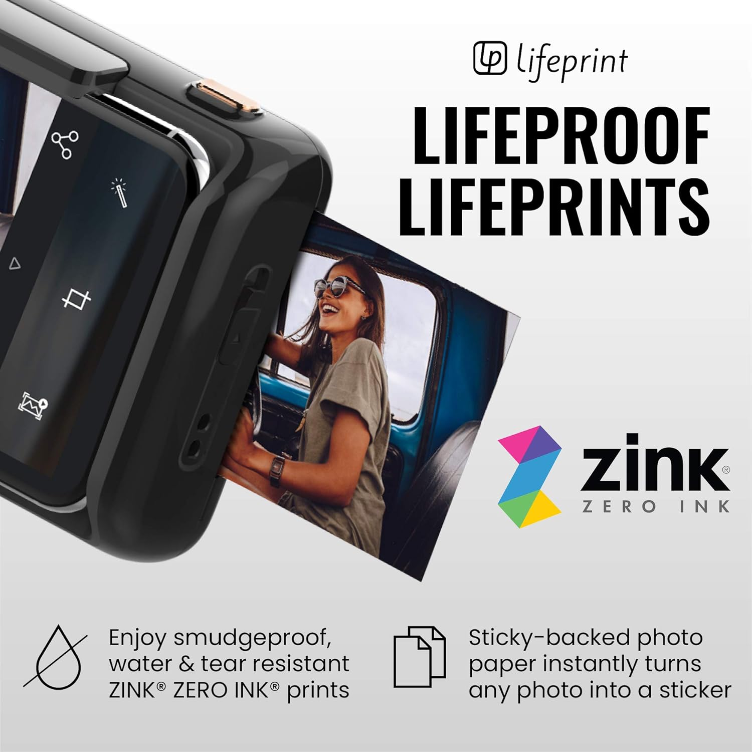 Zařízení produkuje snímky s vysokým rozlišením přímo z vašeho iPhonu. Použitá technologie nevyžaduje žádné inkoustové kazety. Fotografie ve formátu 2x3 palce (cca. 5,08 x 7,62 cm)mají samolepicí zadní stranu, takže je můžete okamžitě využít k dekoraci stěn nebo tvorbě alb. Digitální stabilizace obrazu navíc zajišťuje ostrost každého zachyceného momentu.