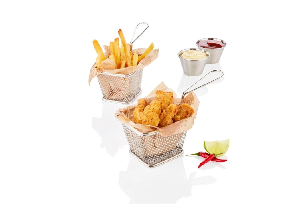 Dodejte svému stolování nápaditost. Tyto miniaturní fritovací košíky jsou skvělým doplňkem pro servírování hranolků a dalších drobných pochutin, ať už při rodinném obědě, nebo na večírku s přáteli.