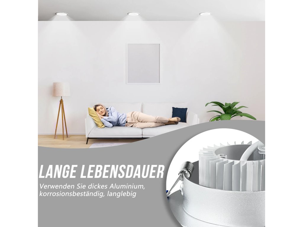 Na rozdíl od levných plastových alternativ jsou tyto reflektory vyrobeny z vysoce kvalitní hliníkové slitiny (letecký hliník). Tento materiál plní dvě zásadní funkce: zajišťuje luxusní vzhled v matně stříbrném rámu a zároveň slouží jako efektivní chladič. Díky tomu si LED čipy udržují nízkou provozní teplotu, což prodlužuje jejich životnost až na úctyhodných 50 000 hodin.