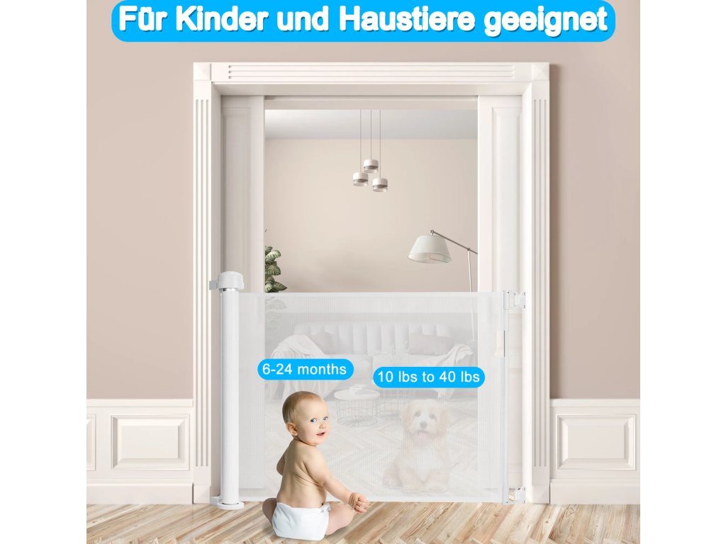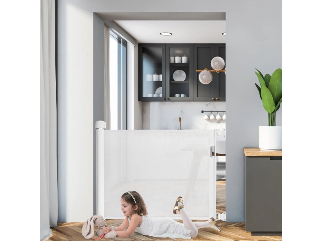 LZQ Výsuvná bezpečnostní roleta pro děti/mazlíčky, max. 150 cm, bílá