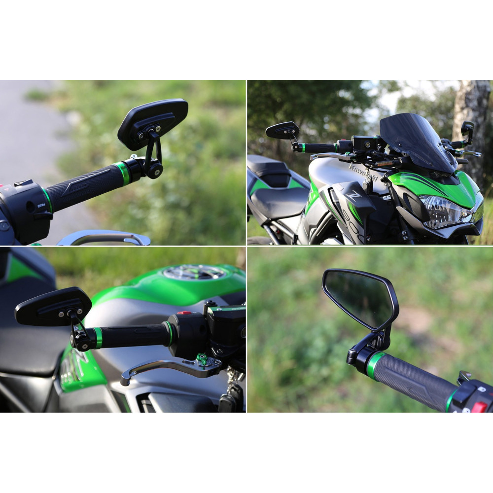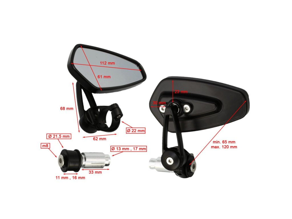 Produkt je dodáván jako pár a instaluje se pomocí přiložené montážní sady, která je kompatibilní s řídítky o vnitřním průměru 13 mm až 17 mm. Zrcátka jsou vhodná pro motocykly značek Yamaha, Suzuki, Honda, Kawasaki, Ducati, Triumph, Aprilia, BMW a další. Je však nutné brát v potaz, že tento model nedisponuje homologací pro silniční provoz.