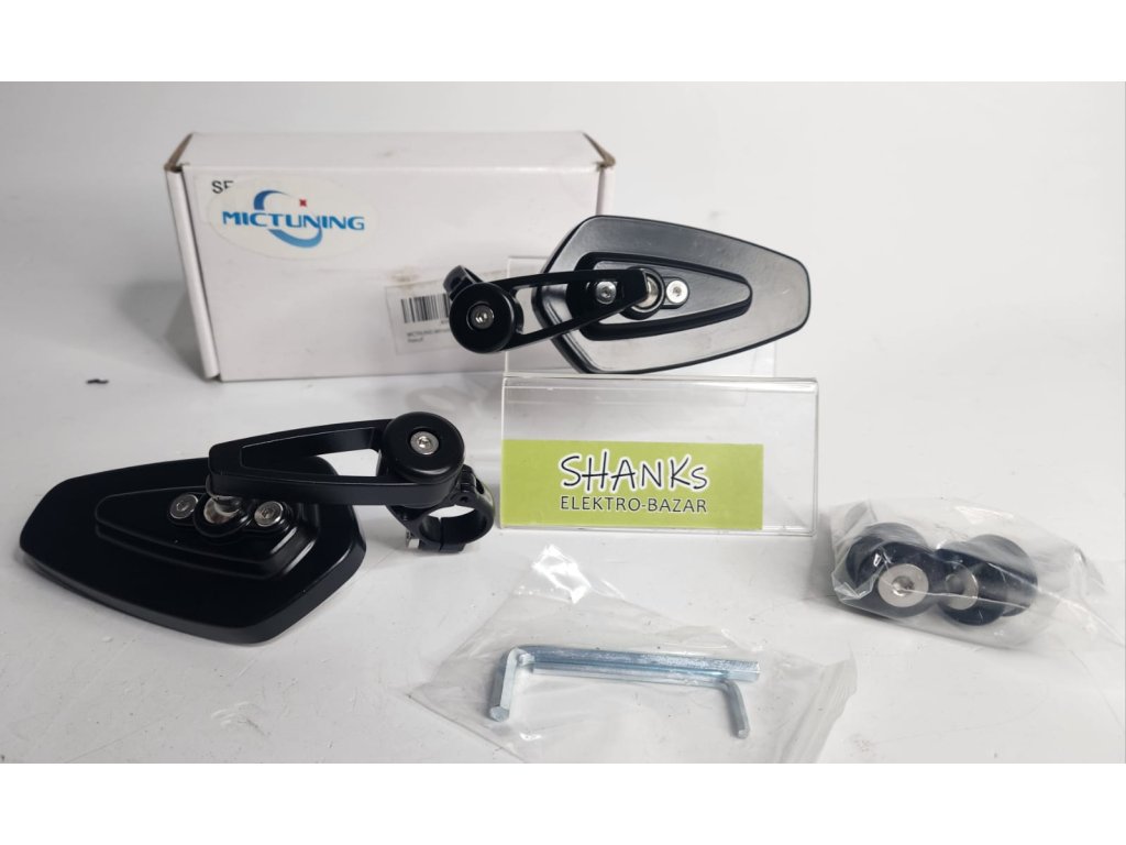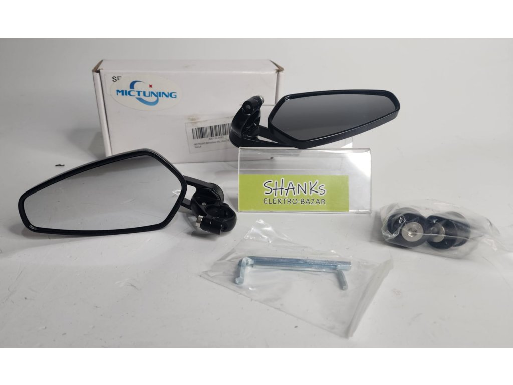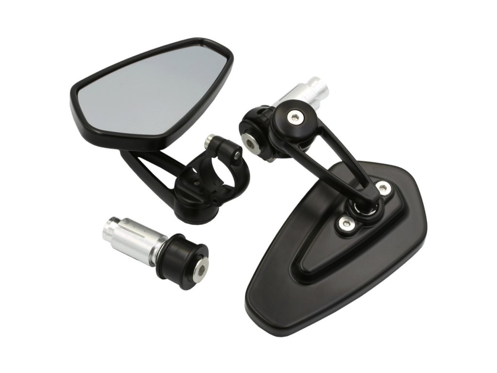 Konstrukce zrcátek využívá kombinaci pevné slitiny hliníku a odolného ABS plastu. Toto spojení materiálů zaručuje dostatečnou pevnost i nízkou hmotnost, která činí pouze 0,26 kg na jeden kus. Elegantní černé provedení dodává motocyklu stylový vzhled a snadno se sladí s ostatními komponenty stroje.