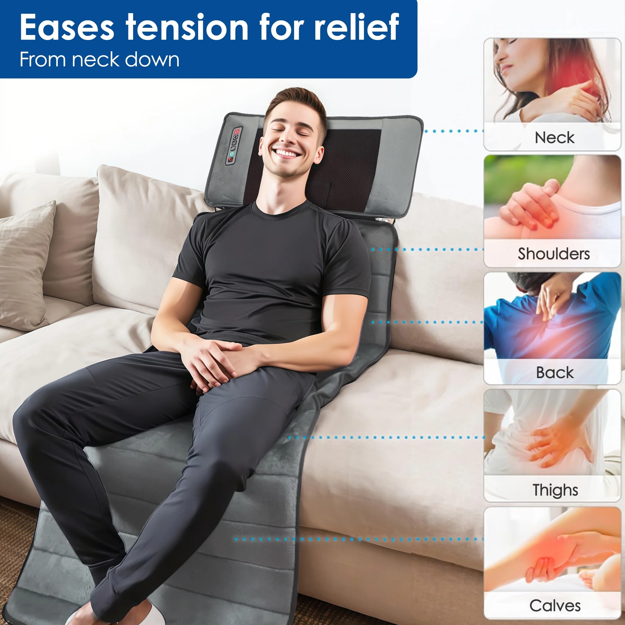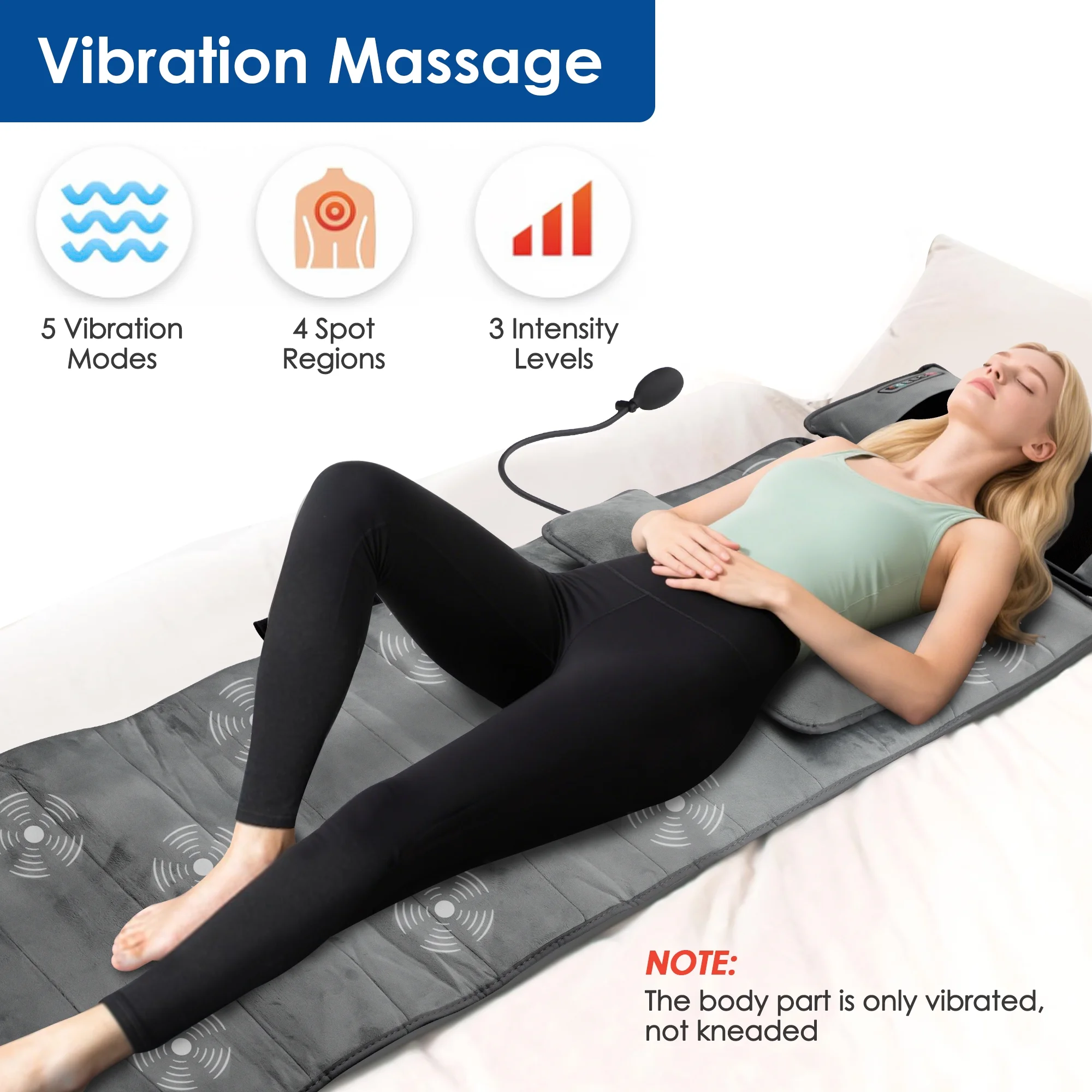 Masážní vyhřívaná podložka s 9 motory a 30 hlavicemi pro celé tělo
