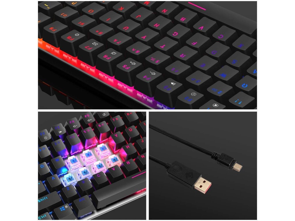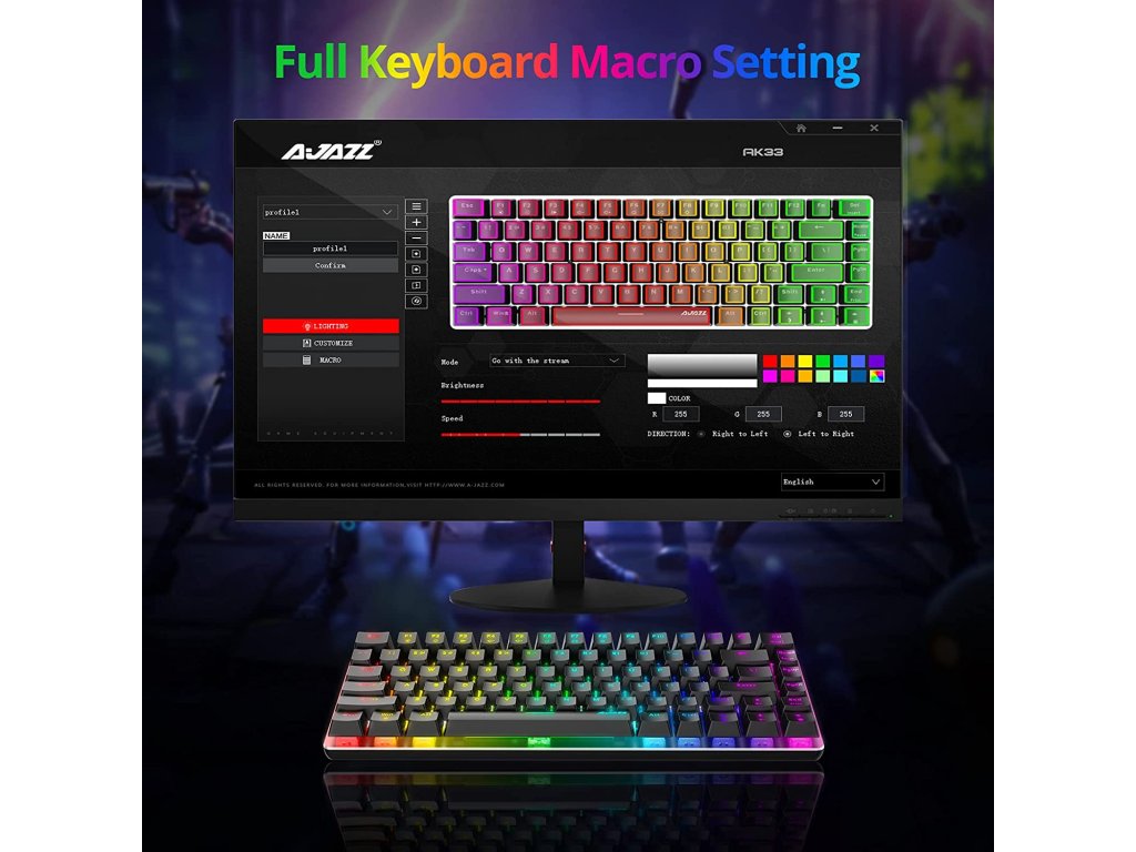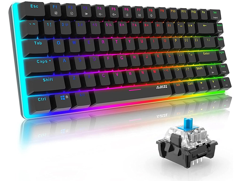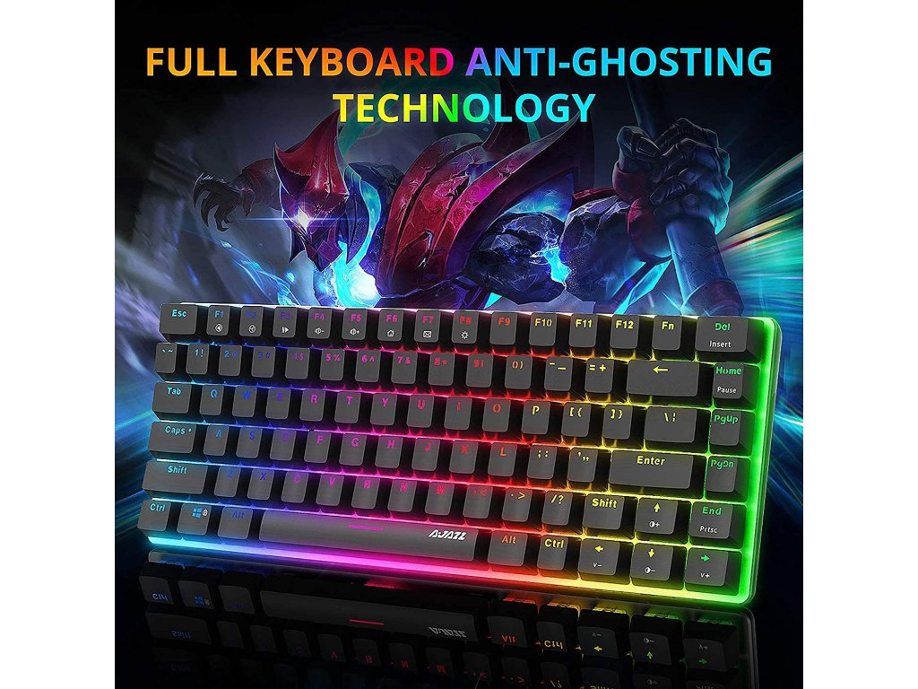 Mechanická herní klávesnice AJAZZ AK33 drátová, 19 režimů RGB osvětlení, 82 kláves Modrý spínač Mechanická klávesnice 100% Anti-Ghosting pro notebook, Windows, PC hry a práci