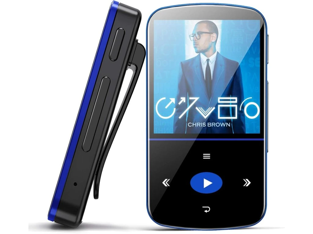 Mibao M550 ultratenký MP3 přehrávač s klipem, 1,5", 32GB, černo-modrá