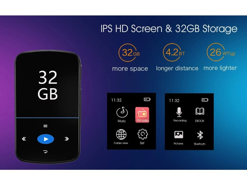 Zařízení si poradí se širokou škálou audio formátů včetně bezztrátového FLAC nebo WAV. Kromě hudby umožňuje prohlížení obrázků, poslech FM rádia a nahrávání hlasových záznamů. Vestavěná Li-ion baterie s kapacitou 270 mAh zajistí až 30 hodin nepřetržitého přehrávání na jedno nabití skrze standardní rozhraní USB 2.0. Podporuje Bluetooth.