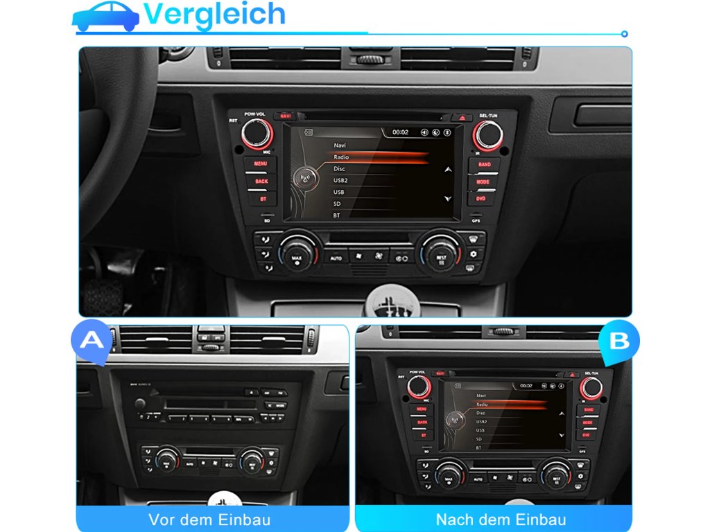 NAVI 7" Autorádio, GPS, BT, DVD/CD Přehrávač, DAB+, BMW Řady 3 E90-E93