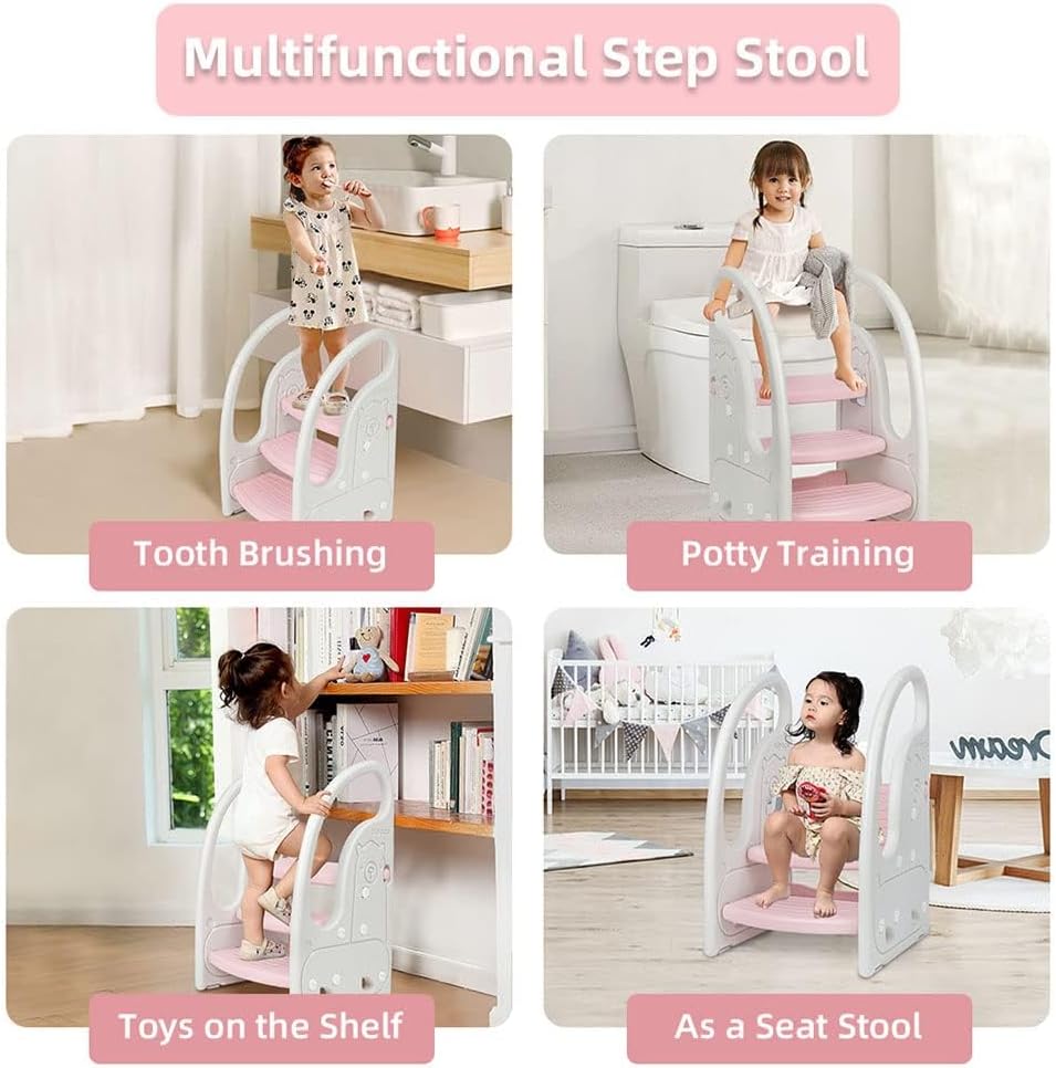 Unikátní design umožňuje rychlou a jednoduchou transformaci stoličky pouhým otočením horního panelu. To ji činí ideální pro různé situace, ať už jako třístupňovou pomůcku pro dosažení na kuchyňskou linku, dvoustupňovou stoličku k umyvadlu nebo jako dětskou židličku. S lehkostí pomůže dětem při toaletním tréninku, při vstávání z postele nebo pohovky, podpoří jejich soběstačnost a zkoumání světa.