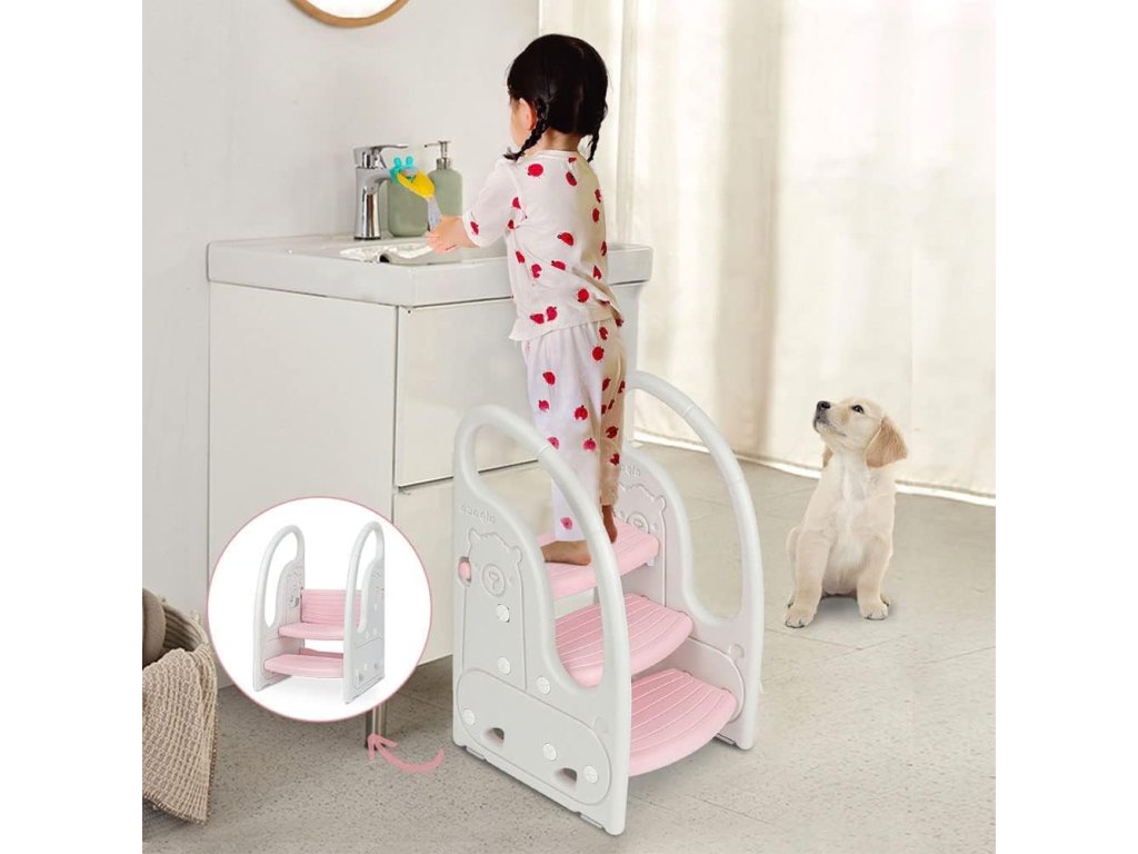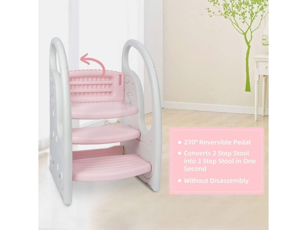Unikátní design umožňuje rychlou a jednoduchou transformaci stoličky pouhým otočením horního panelu. To ji činí ideální pro různé situace, ať už jako třístupňovou pomůcku pro dosažení na kuchyňskou linku, dvoustupňovou stoličku k umyvadlu nebo jako dětskou židličku. S lehkostí pomůže dětem při toaletním tréninku, při vstávání z postele nebo pohovky, podpoří jejich soběstačnost a zkoumání světa.